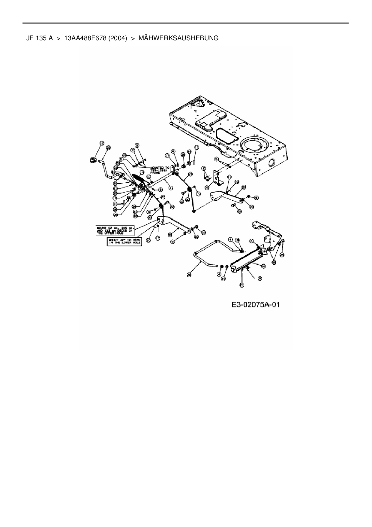 Download Ersatzteil-Zeichnung MTD JE 135 A Zeichnung Mähwerksaushebung (PDF-Format)