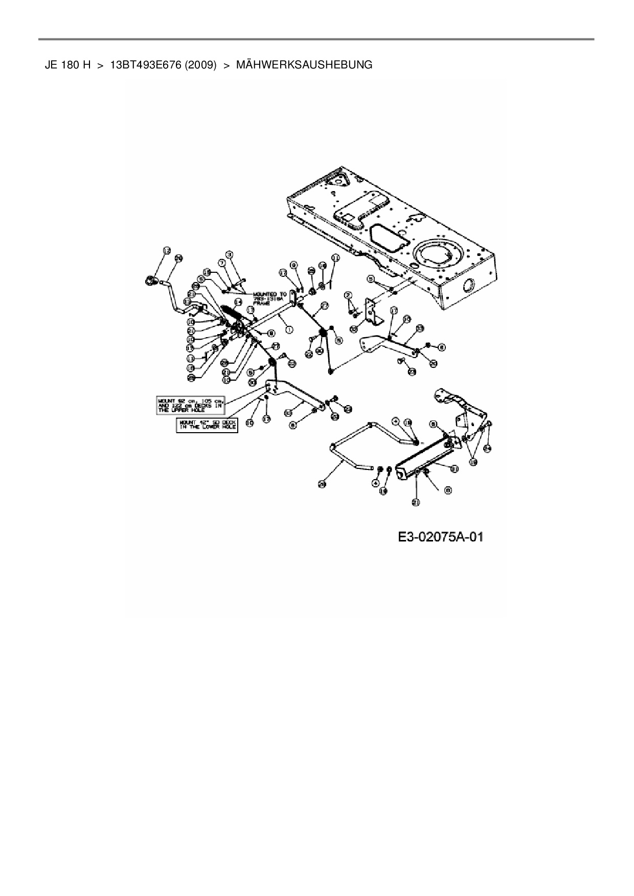 Download Ersatzteil-Zeichnung MTD JE 180 H Zeichnung Mähwerksaushebung (JPG-Format)