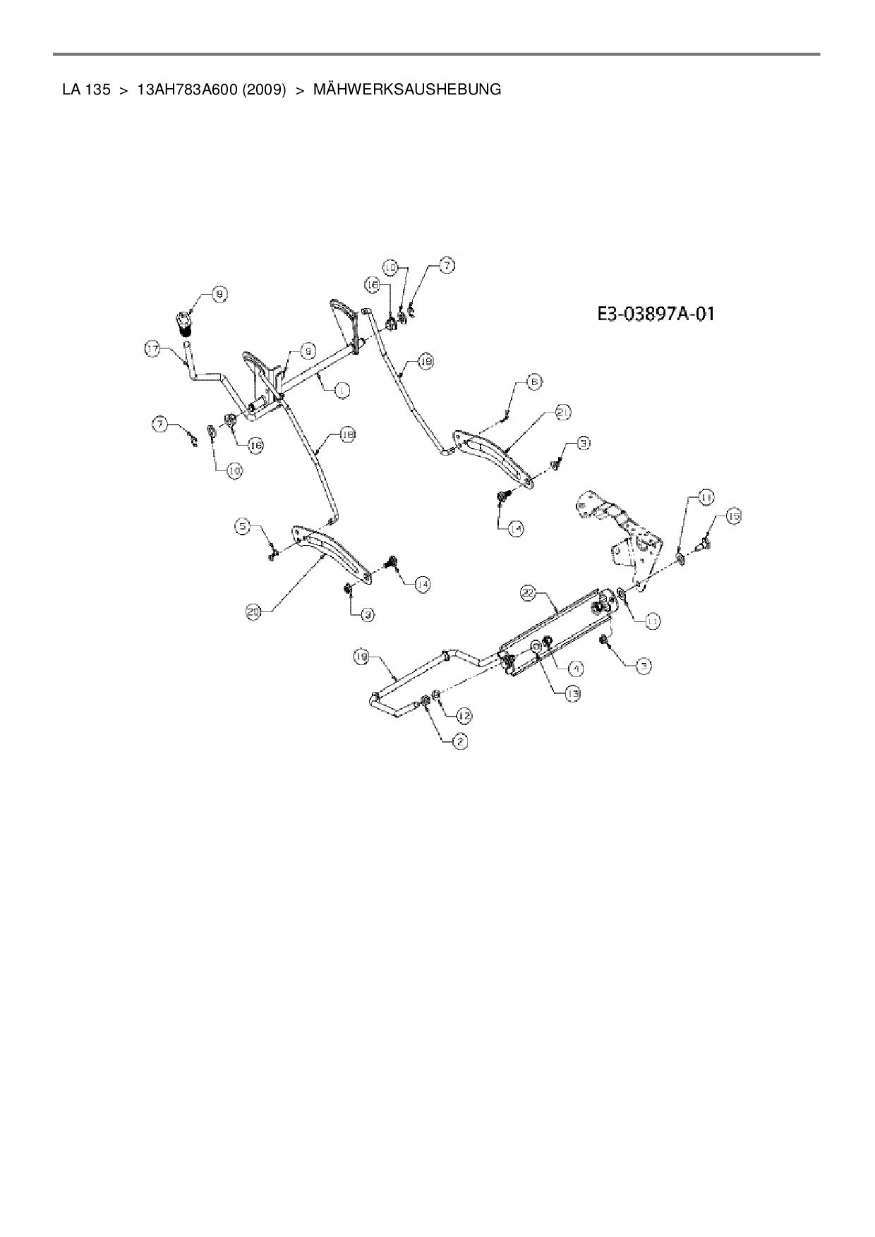 Ersatzteile für Rasentraktor MTD LA 135 aus der Zeichnung Mähwerksaushebung: