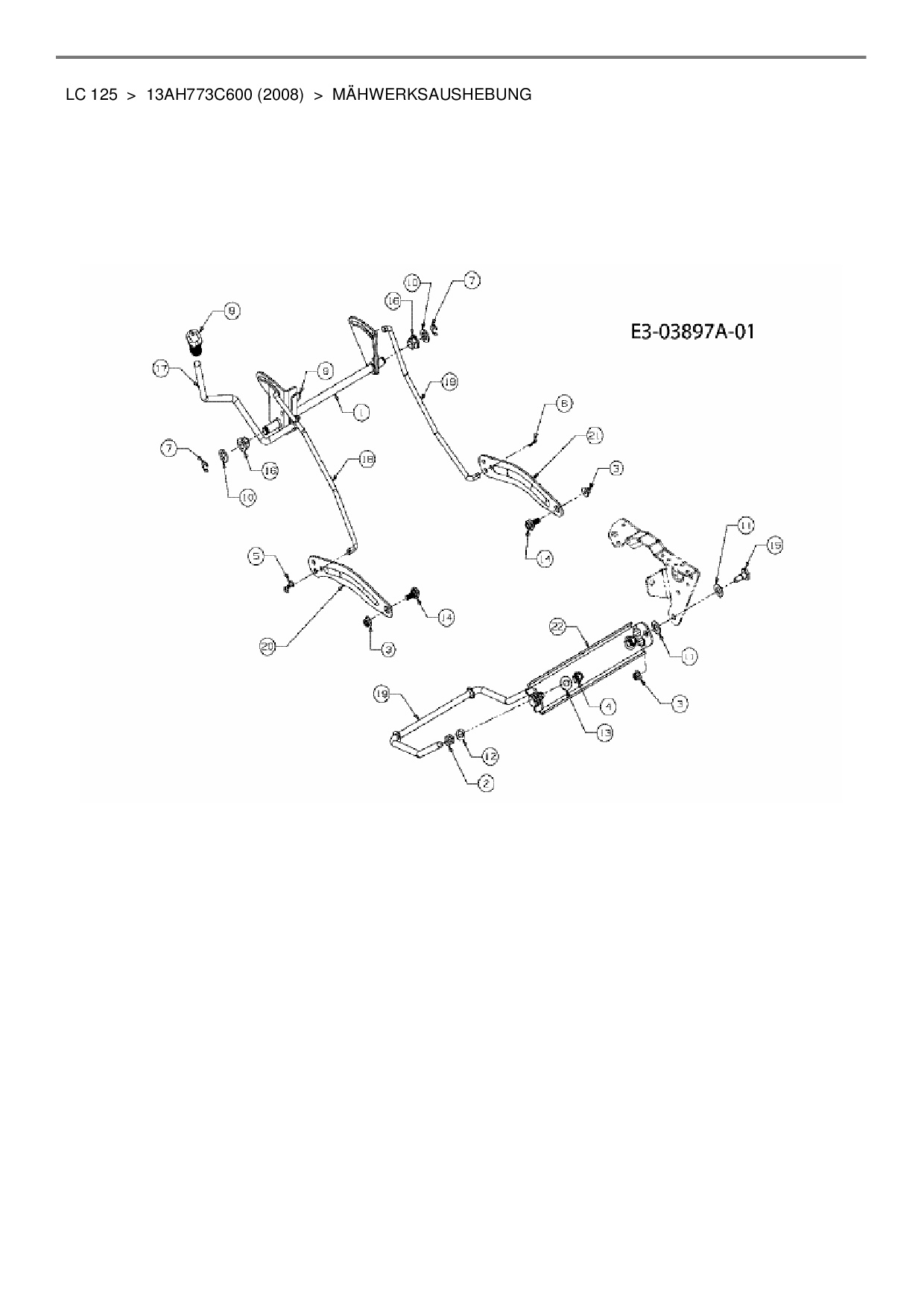 Ersatzteile für Rasentraktor MTD LC 125 aus der Zeichnung Mähwerksaushebung: