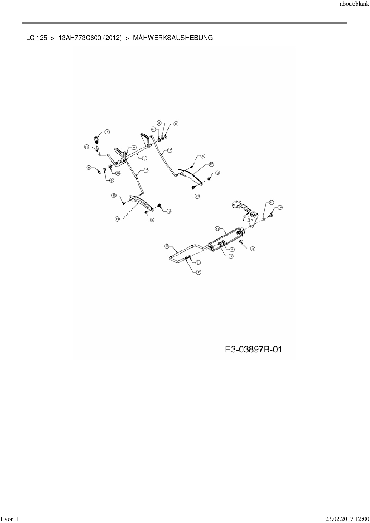Ersatzteile für Rasentraktor MTD LC 125 aus der Zeichnung Mähwerksaushebung: