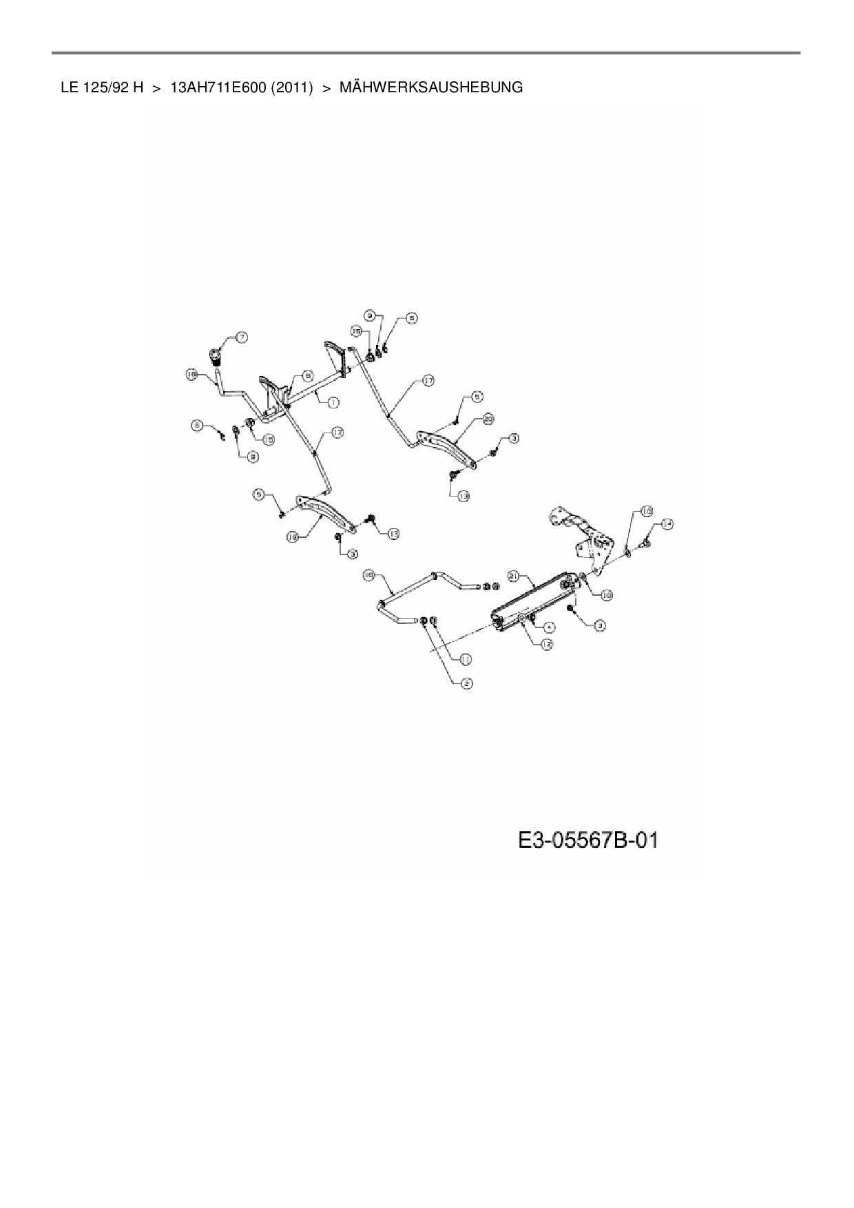 Ersatzteile für Rasentraktor MTD LE 125/92 H aus der Zeichnung Mähwerksaushebung: