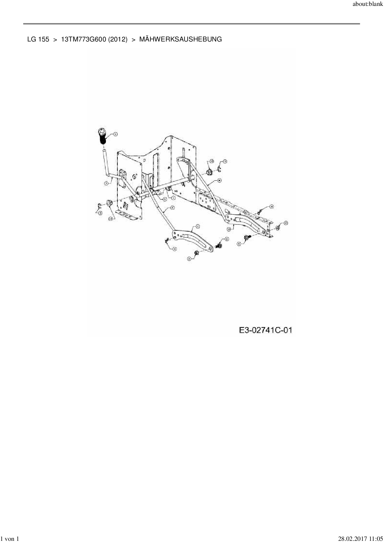 Ersatzteile für Rasentraktor MTD LG 155 aus der Zeichnung Mähwerksaushebung: