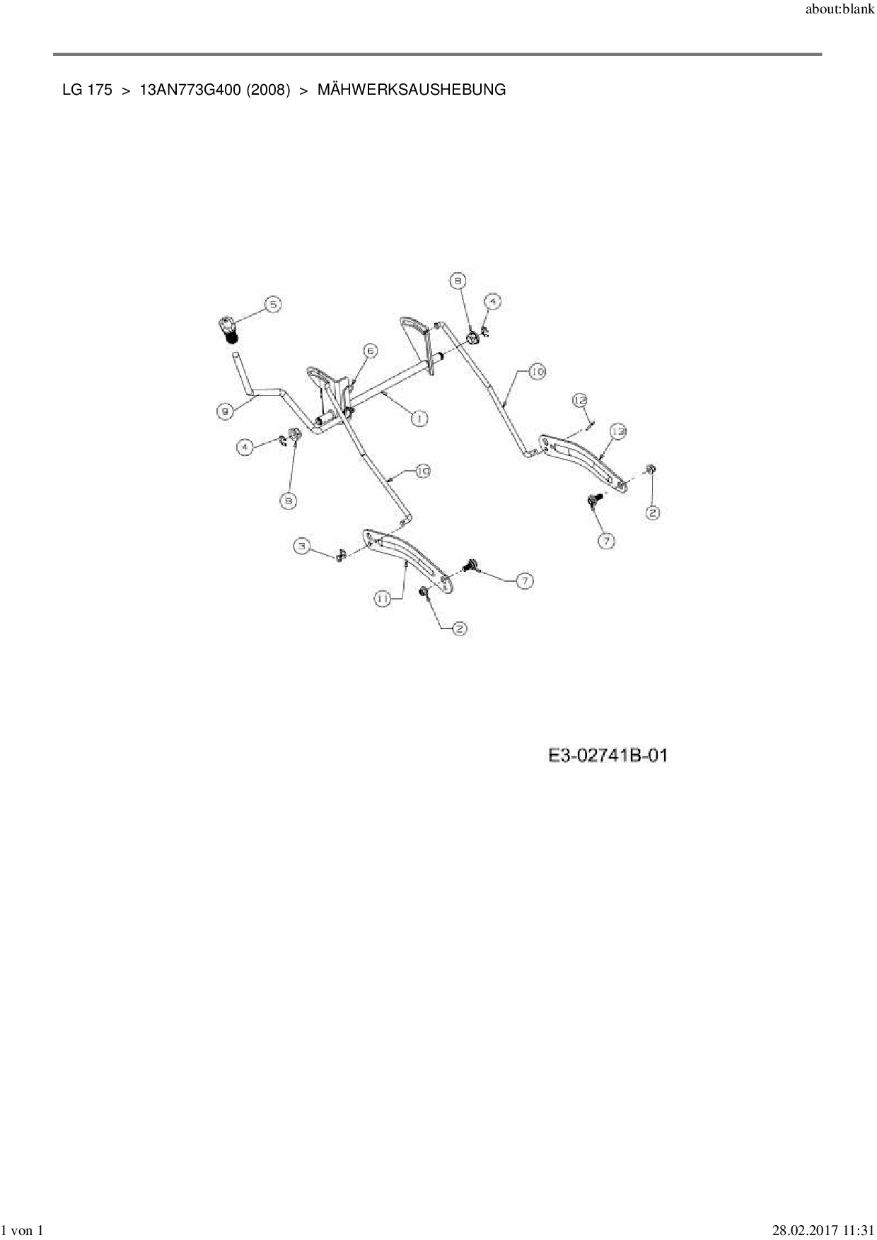Ersatzteile für Rasentraktor MTD LG 175 aus der Zeichnung Mähwerksaushebung: