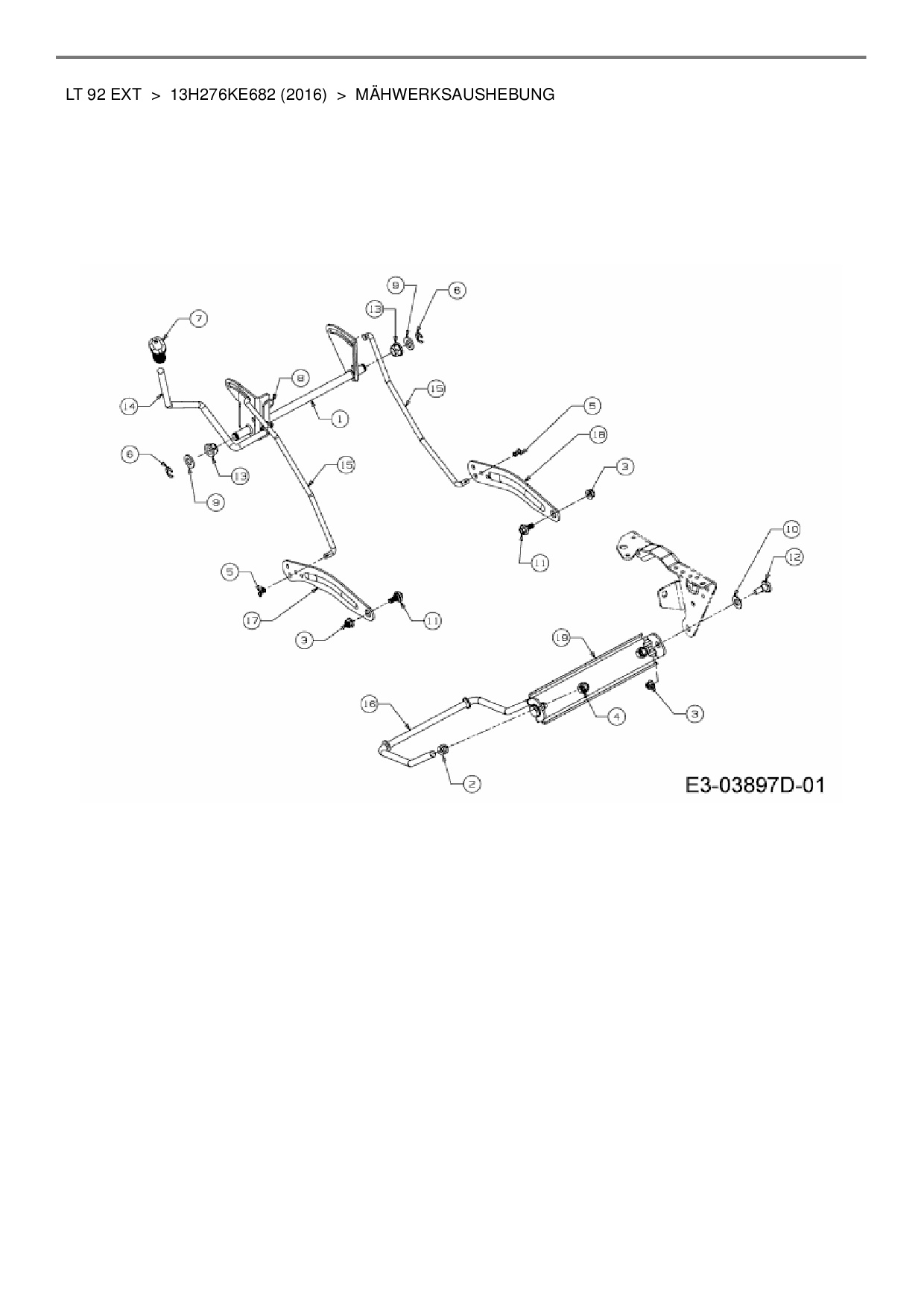 Ersatzteile für Rasentraktor MTD LT 92 EXT aus der Zeichnung Mähwerksaushebung: