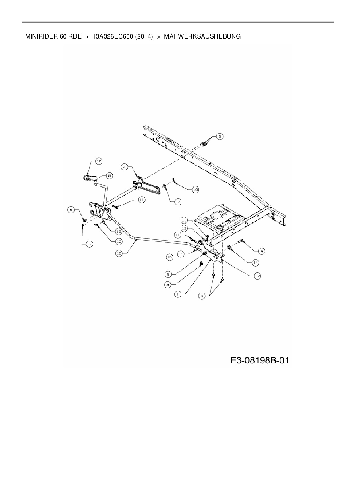 Ersatzteile für Rasentraktor MTD Minirider 60 RDE aus der Zeichnung Mähwerksaushebung: