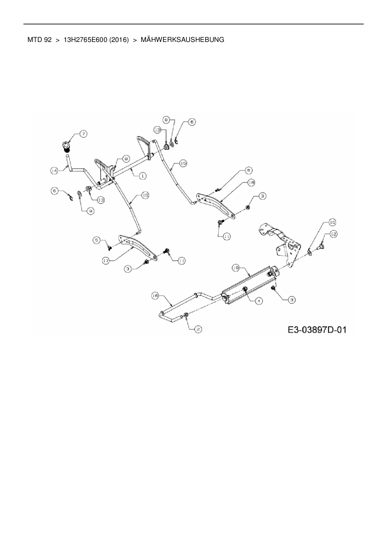 Ersatzteile für Rasentraktor MTD MTD 92 aus der Zeichnung Mähwerksaushebung: