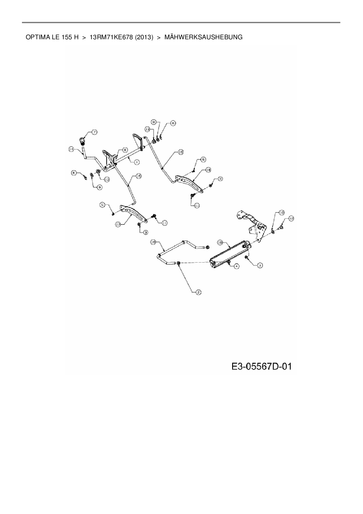 Ersatzteile für Rasentraktor MTD Optima LE 155 H aus der Zeichnung Mähwerksaushebung: