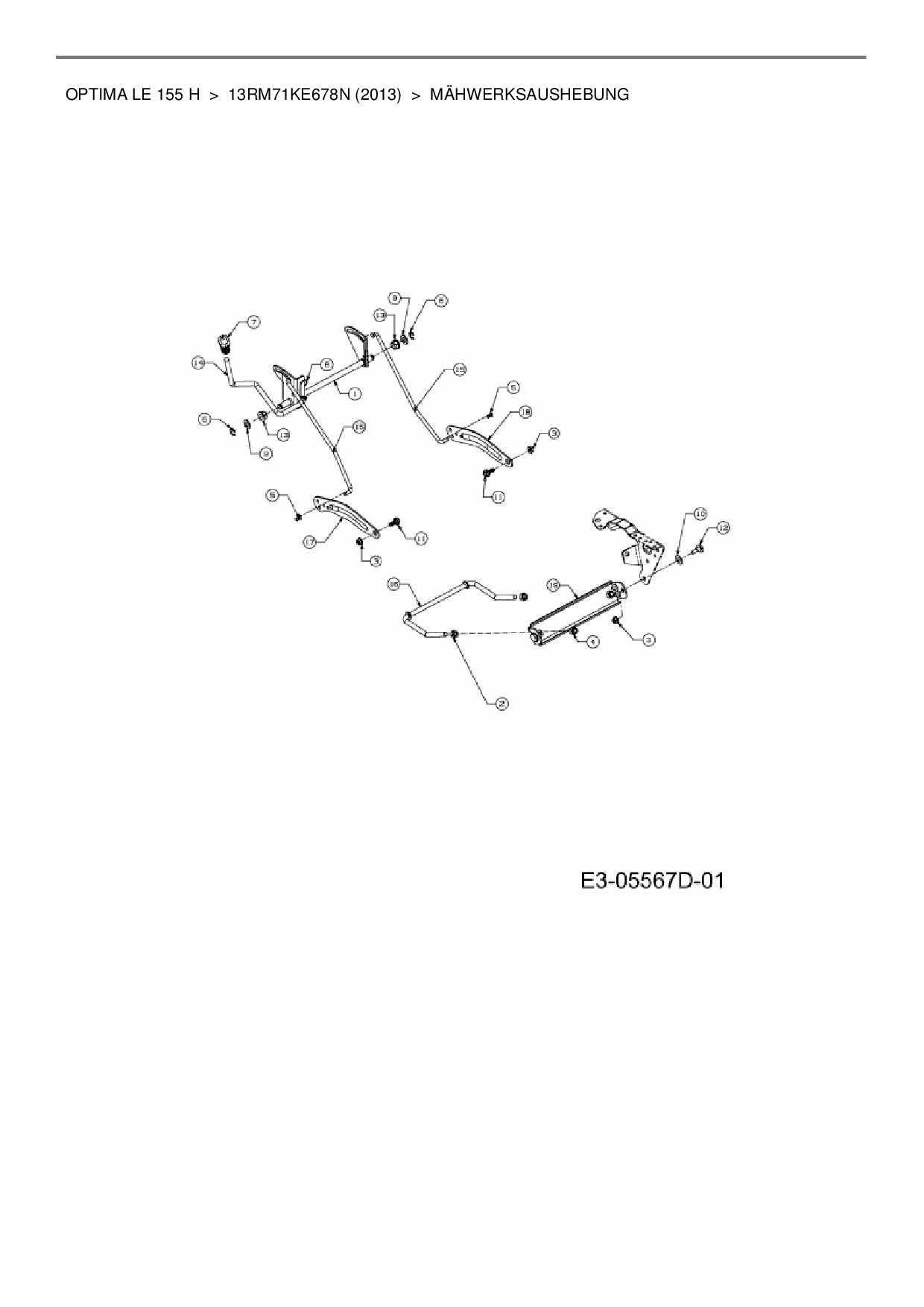 Ersatzteile für Rasentraktor MTD Optima LE 155 H aus der Zeichnung Mähwerksaushebung: