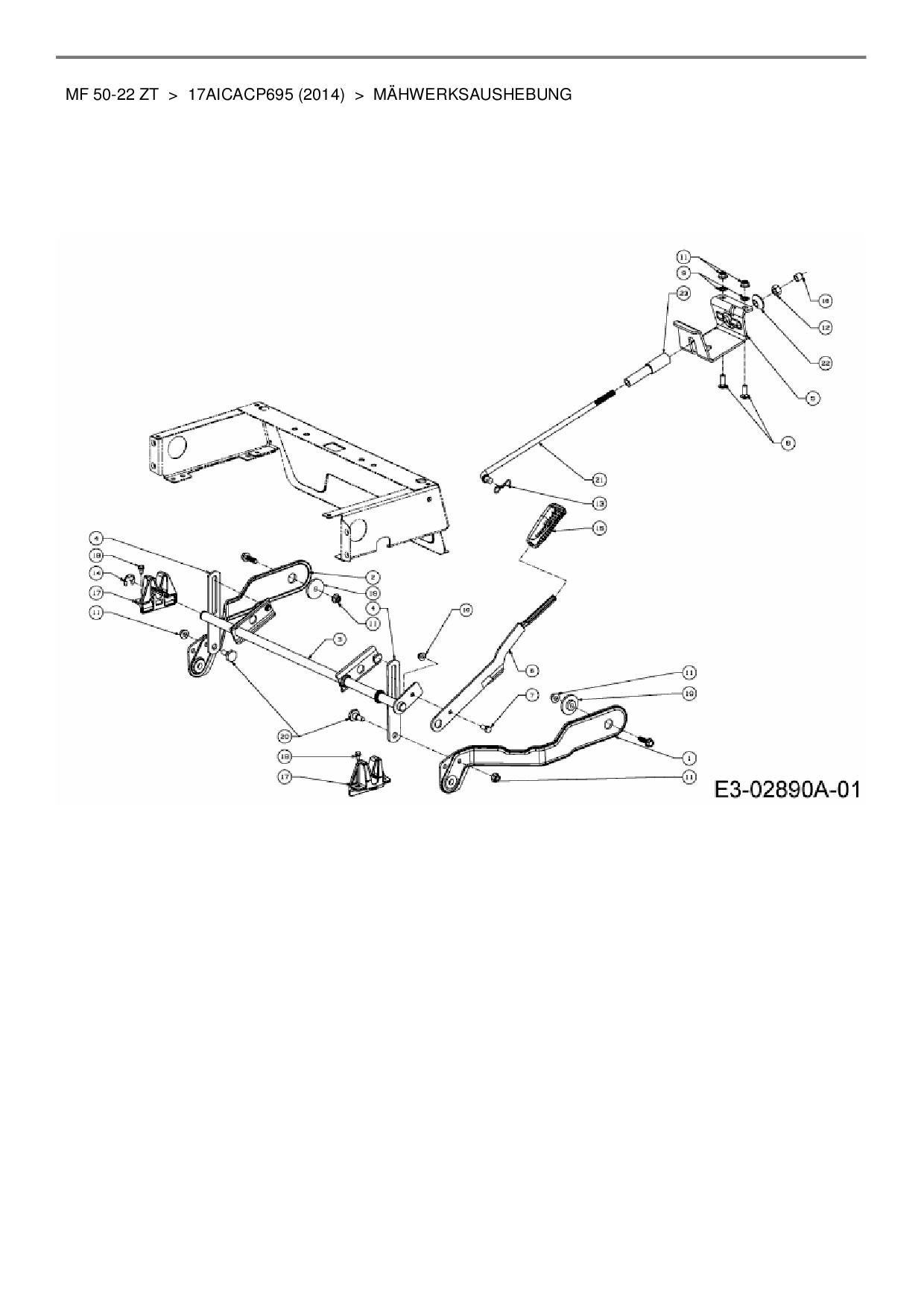Zeichnung für Massey Ferguson Zero Turn MF 50-22 ZT mit der Geräte-Artikelnr. 17AICACP695 ab Baujahr 2014: