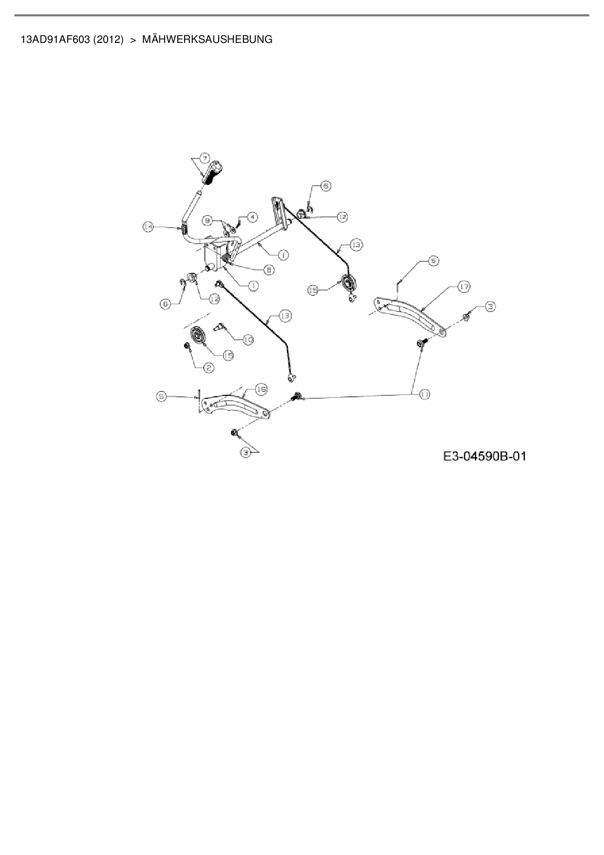 Ersatzteile für Rasentraktor Cub Cadet CC 1016 HF aus der Zeichnung Mähwerksaushebung:
