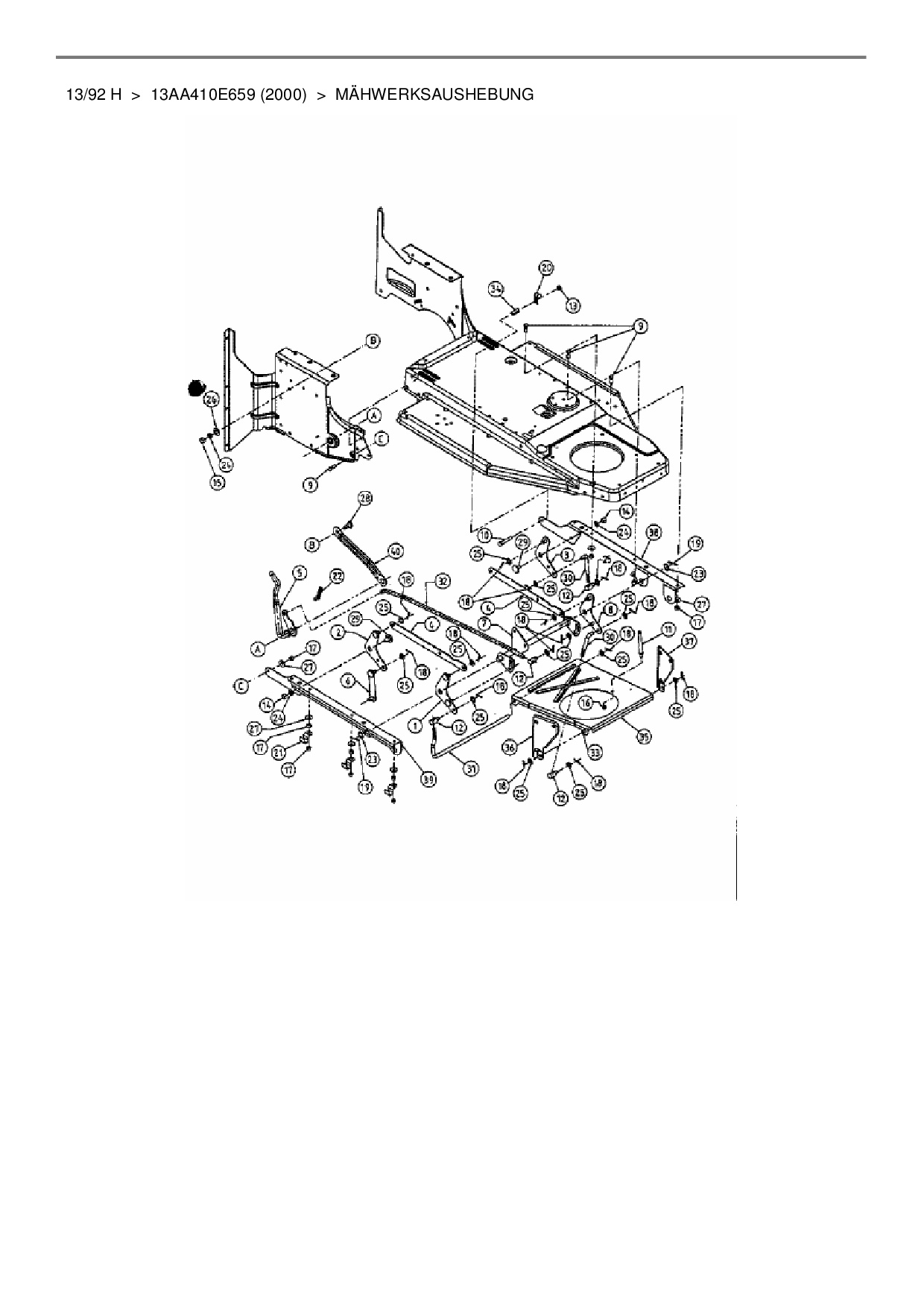 Ersatzteile für Rasentraktor Mastercut 13/92 H aus der Zeichnung Mähwerksaushebung: