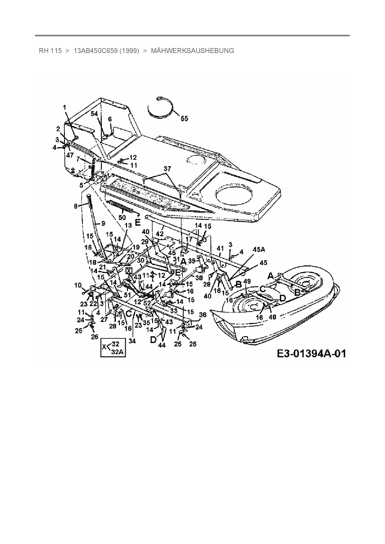 Zeichnung für Mastercut Rasentraktor RH 115 mit der Geräte-Artikelnr. 13AB450C659 ab Baujahr 1999: