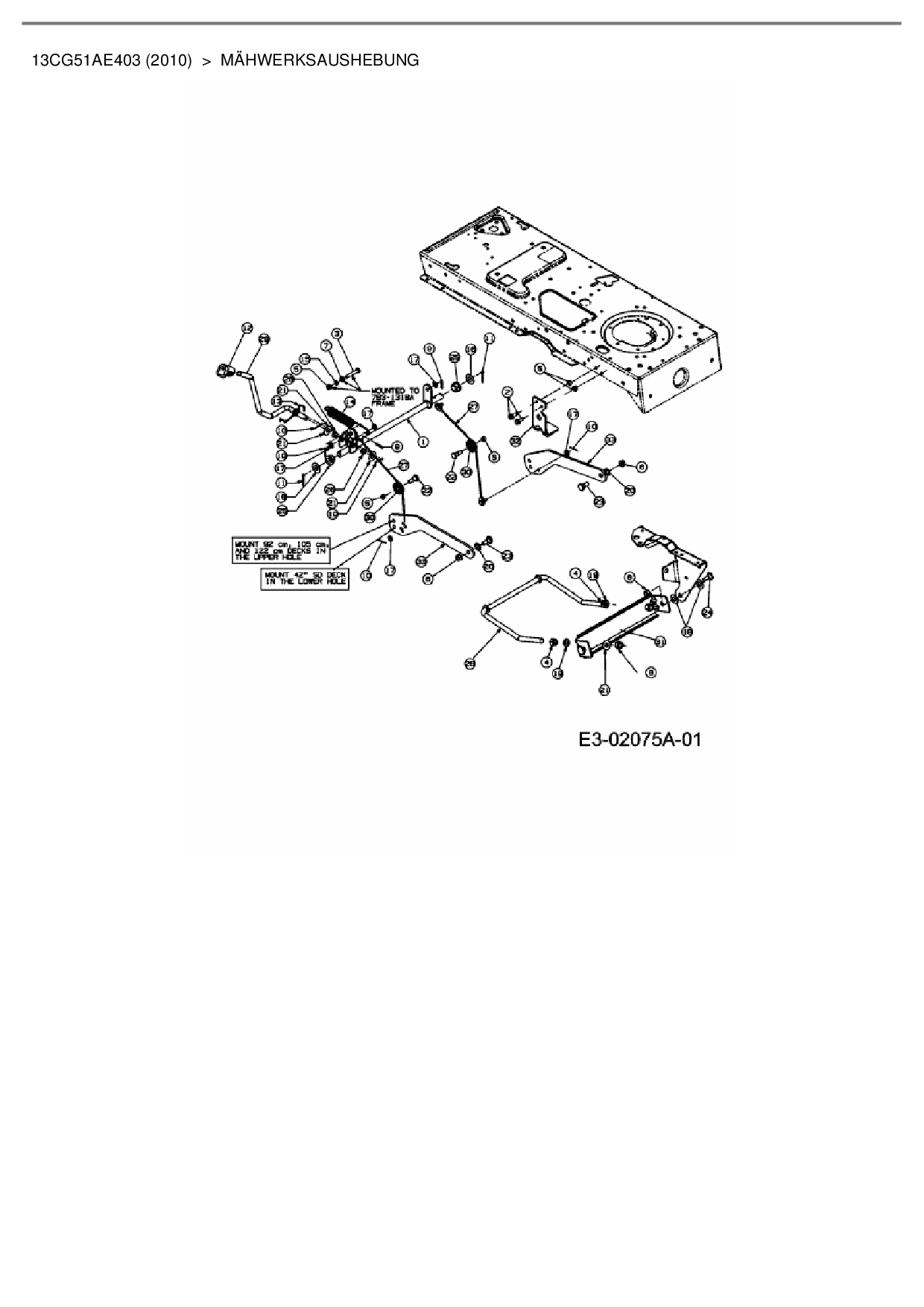 Download Ersatzteil-Zeichnung Cub Cadet CC 1016 RD-E Zeichnung Mähwerksaushebung (PDF-Format)