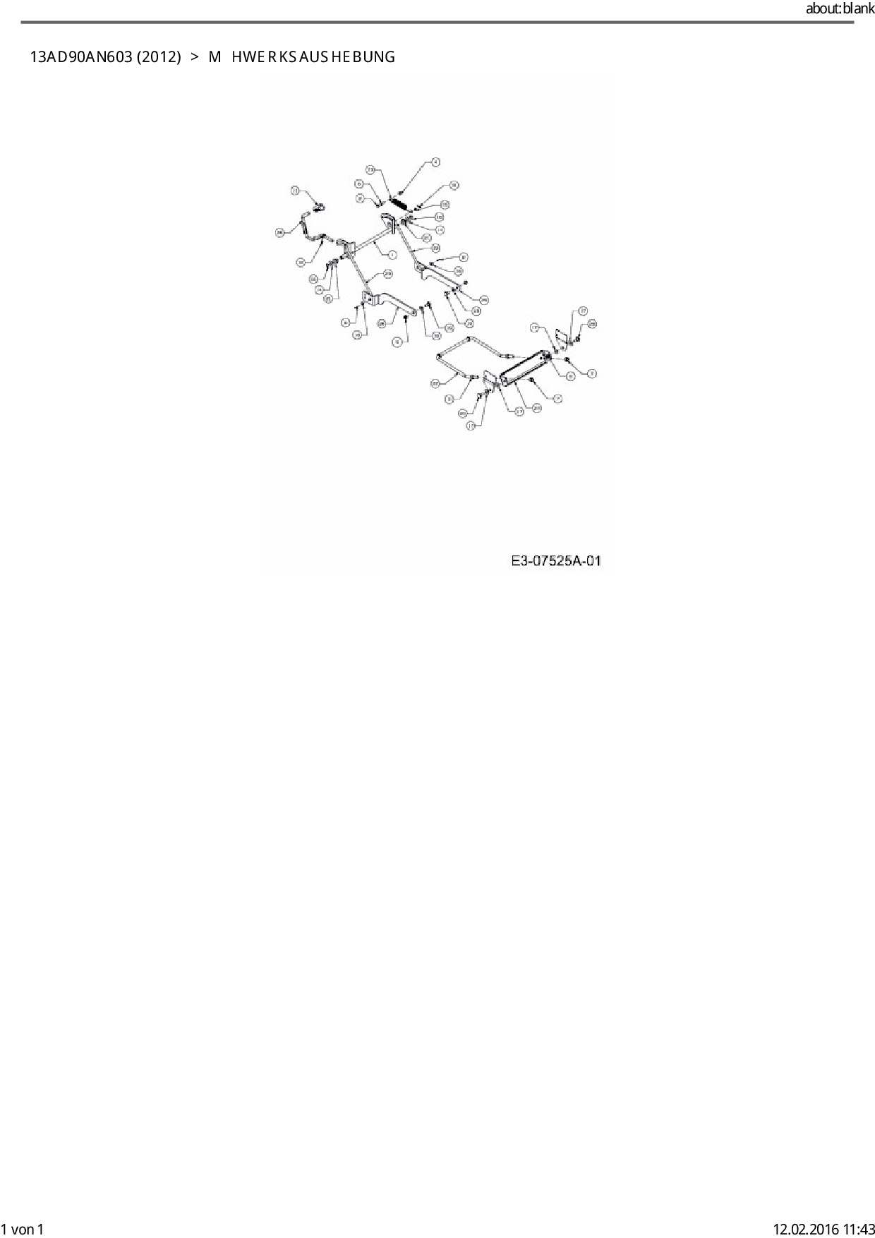 Download Ersatzteil-Zeichnung Cub Cadet CC 1018 AN Zeichnung Mähwerksaushebung (PDF-Format)