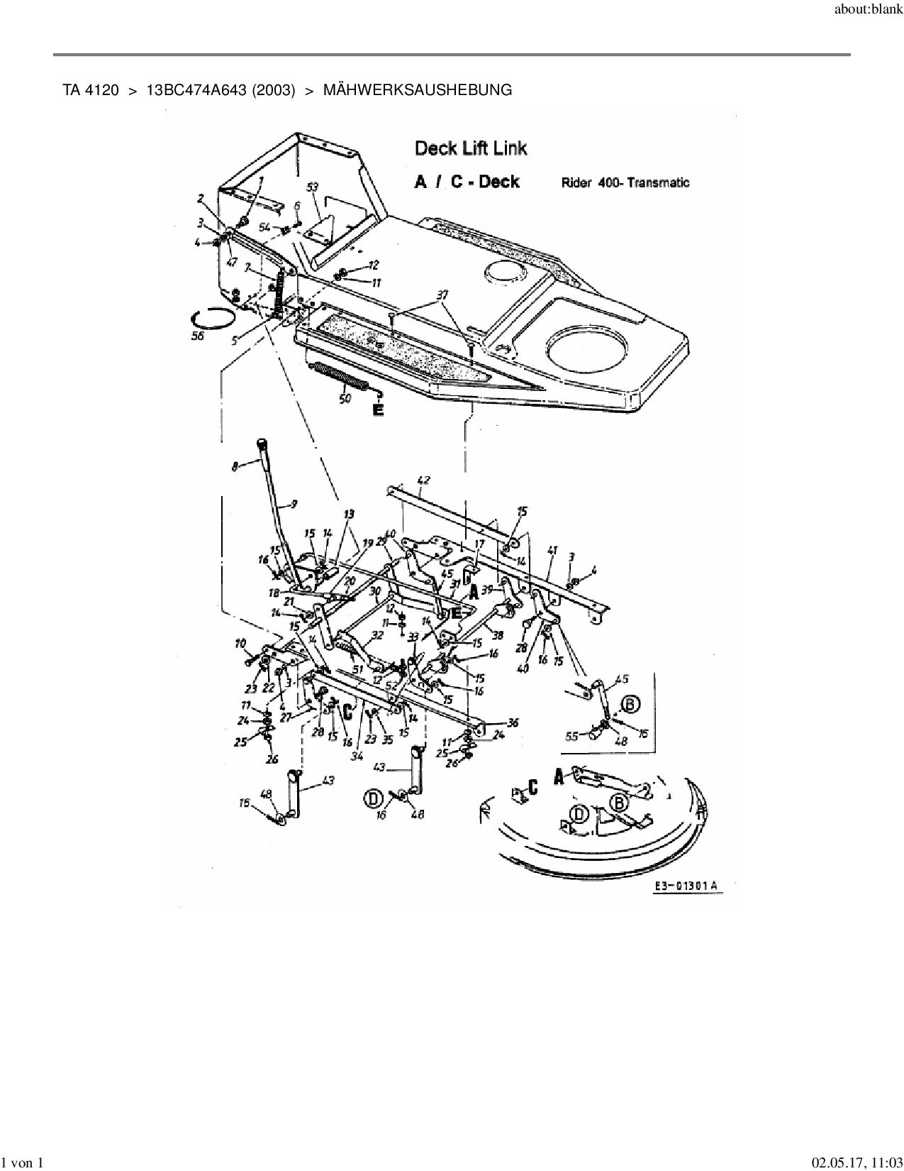 Ersatzteile für Rasentraktor Yard-Man TA 4120 aus der Zeichnung Mähwerksaushebung: