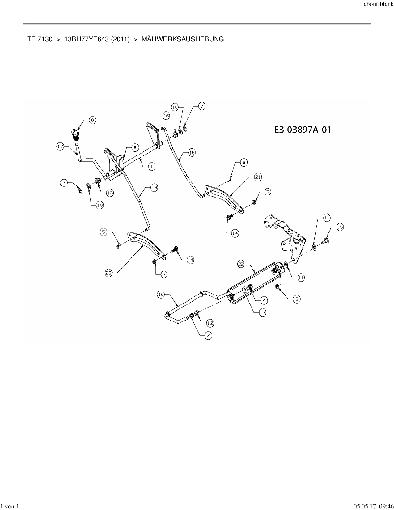 Ersatzteile für Rasentraktor Yard-Man TE 7130 aus der Zeichnung Mähwerksaushebung: