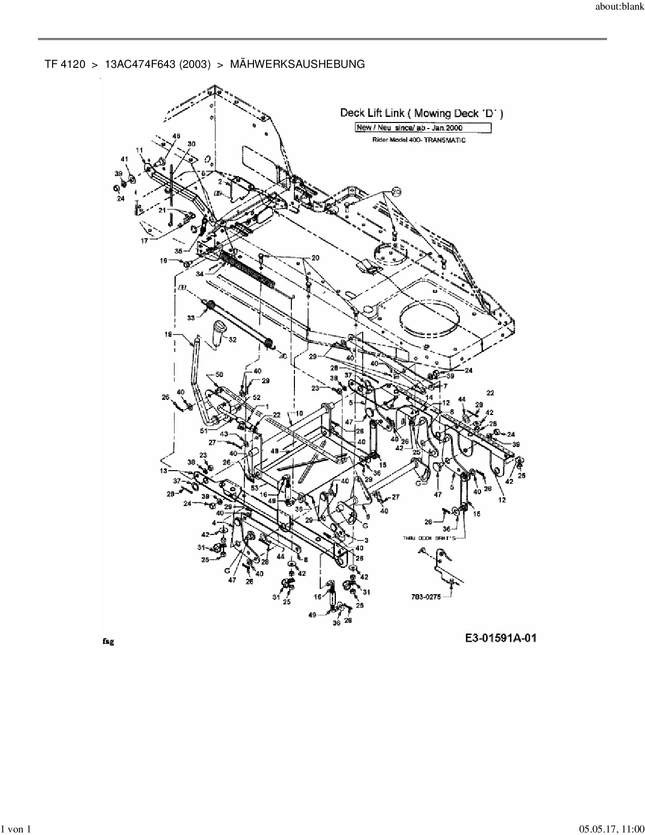 Ersatzteile für Rasentraktor Yard-Man TF 4120 aus der Zeichnung Mähwerksaushebung: