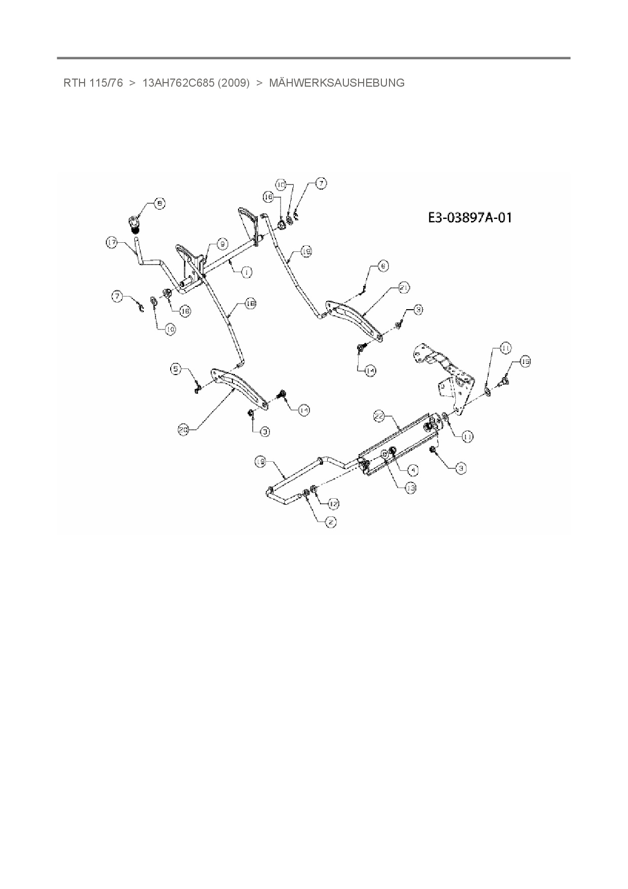 Ersatzteile für Rasentraktor Sunline RTH 115/76 aus der Zeichnung Mähwerksaushebung:
