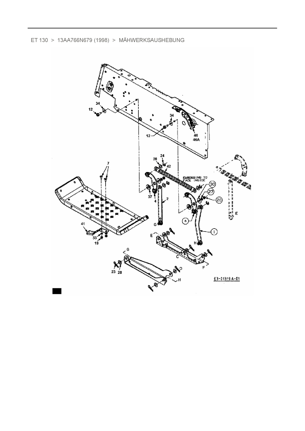 Ersatzteile für Rasentraktor White ET 130 aus der Zeichnung Mähwerksaushebung: