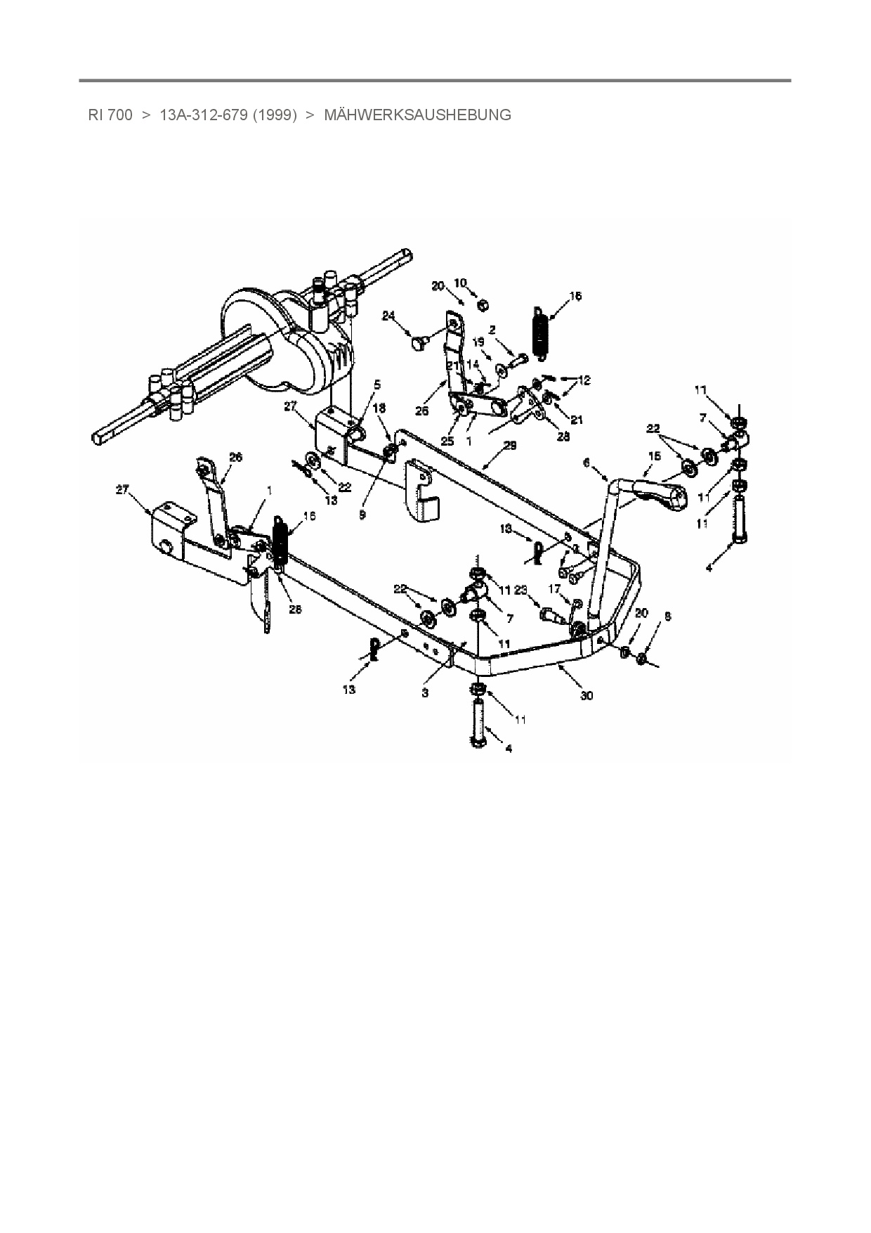 Ersatzteile für Rasentraktor White RI 700 aus der Zeichnung Mähwerksaushebung: