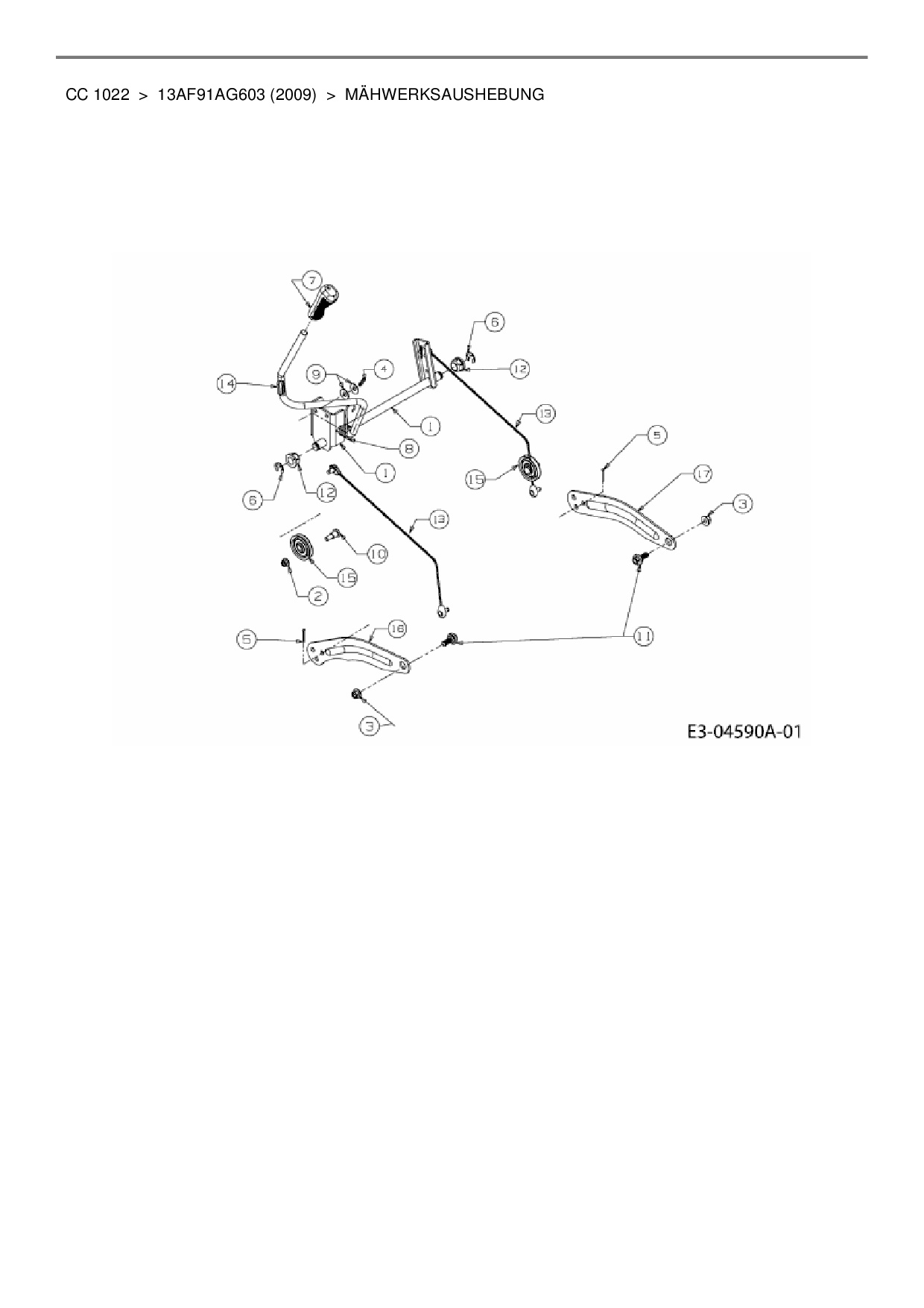 Download Ersatzteil-Zeichnung Cub Cadet CC 1022 Zeichnung Mähwerksaushebung (PDF-Format)