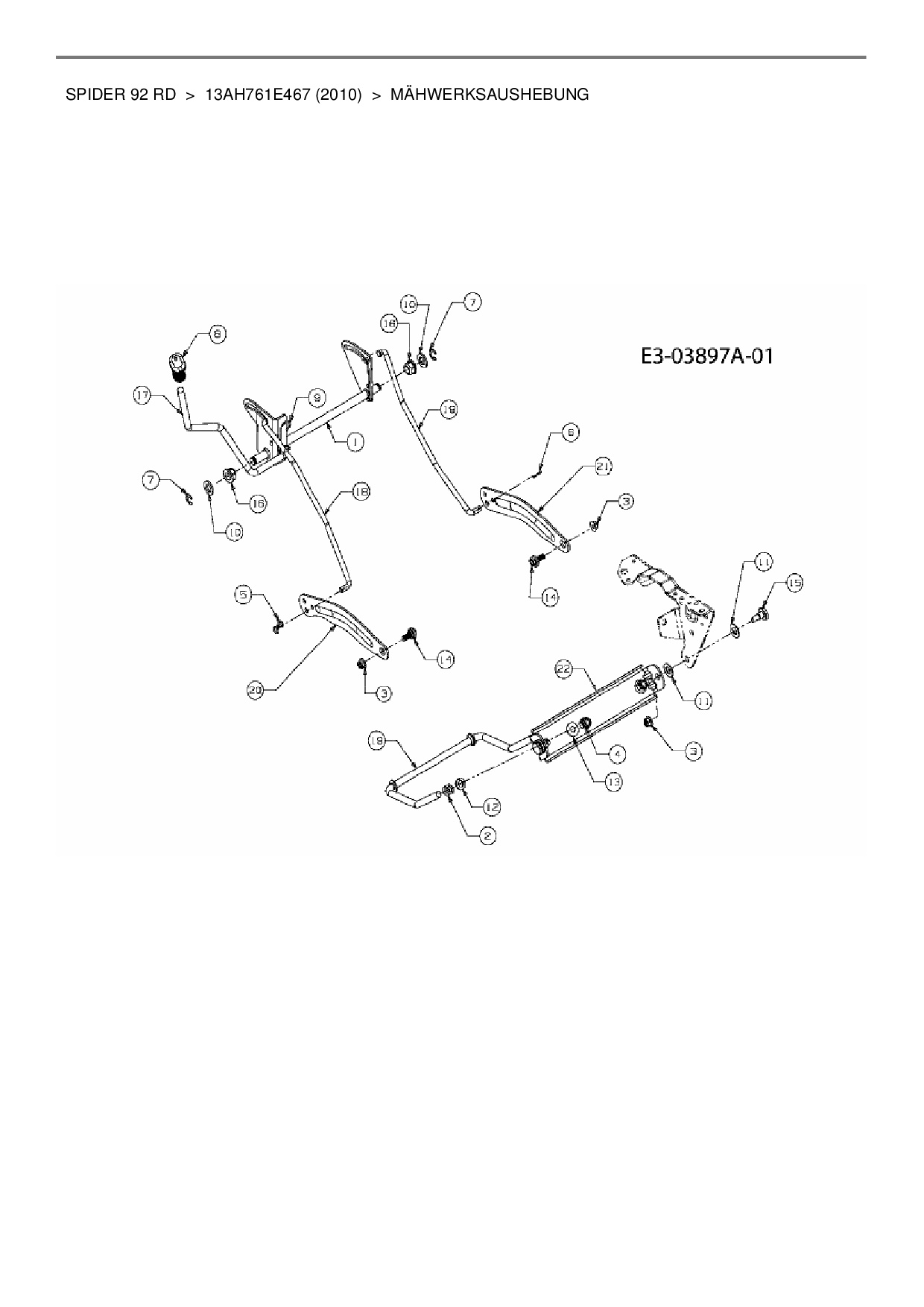 Ersatzteile für Rasentraktor MTD Spider 92 RD aus der Zeichnung Mähwerksaushebung: