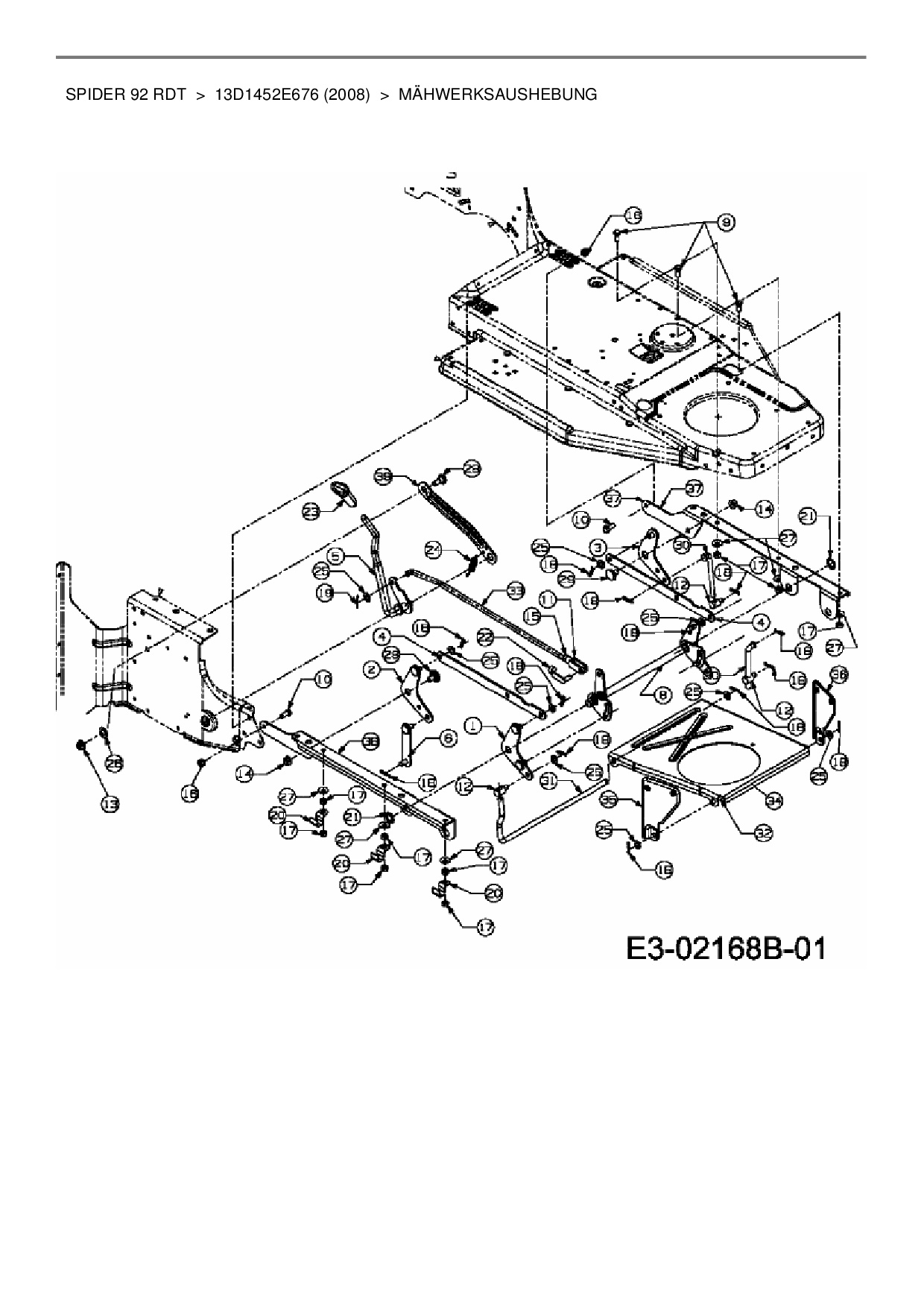 Ersatzteile für Rasentraktor MTD Spider 92 RDT aus der Zeichnung Mähwerksaushebung:
