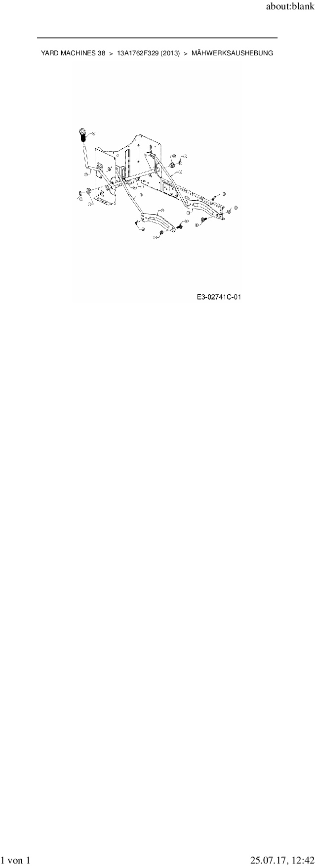 Ersatzteile für Rasentraktor MTD Yard Machines 38 aus der Zeichnung Mähwerksaushebung: