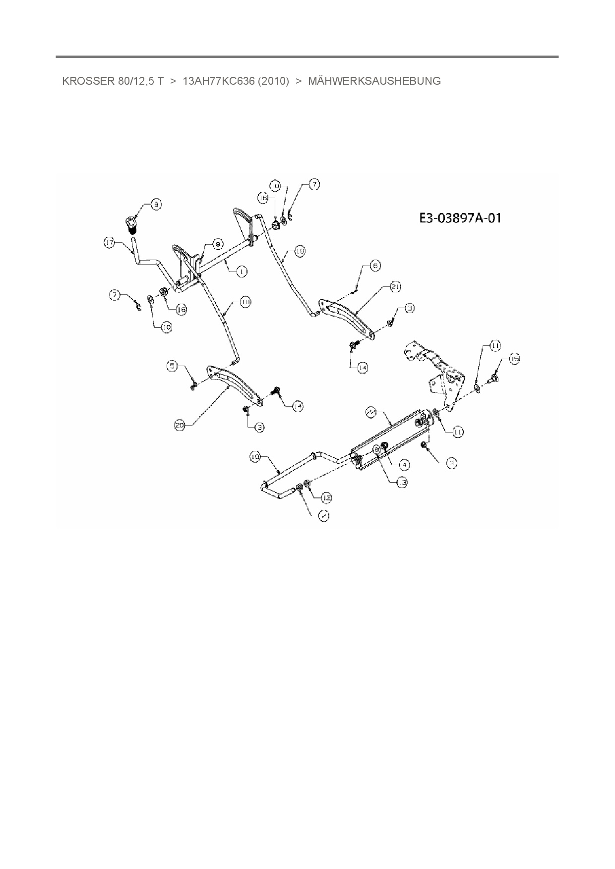 Zeichnung für Oleo-Mac Rasentraktor Krosser 80/12,5 T mit der Geräte-Artikelnr. 13AH77KC636 ab Baujahr 2010: