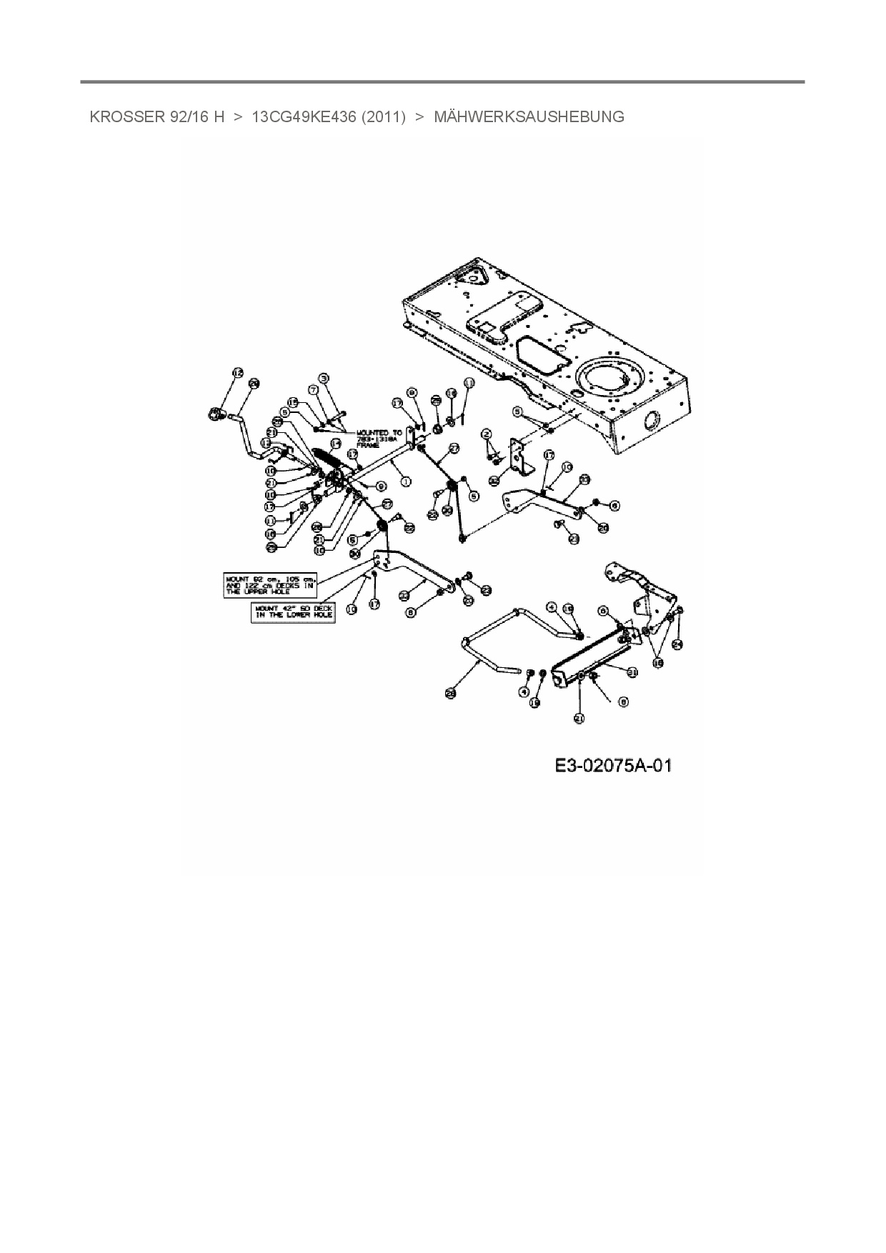 Zeichnung für Oleo-Mac Rasentraktor Krosser 92/16 H mit der Geräte-Artikelnr. 13CG49KE436 ab Baujahr 2011: