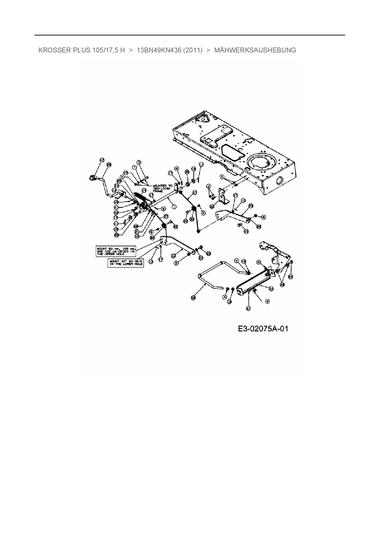 Ersatzteile für Rasentraktor Oleo-Mac Krosser Plus 105/17,5 H aus der Zeichnung Mähwerksaushebung: