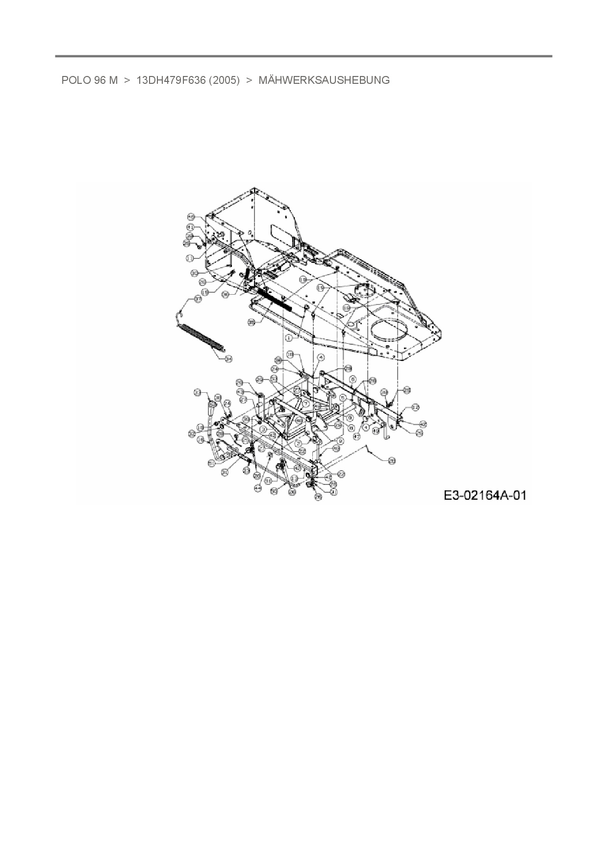 Ersatzteile für Rasentraktor Oleo-Mac Polo 96 M aus der Zeichnung Mähwerksaushebung: