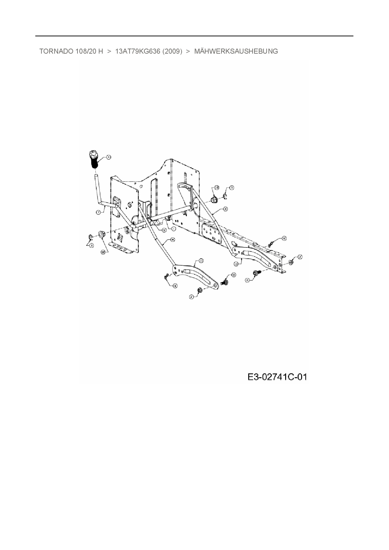 Ersatzteile für Rasentraktor Oleo-Mac Tornado 108/20 H aus der Zeichnung Mähwerksaushebung: