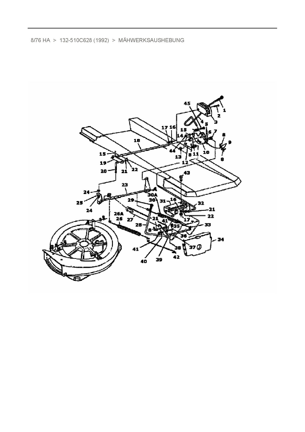 Ersatzteile für Rasentraktor Raiffeisen 8/76 HA aus der Zeichnung Mähwerksaushebung: