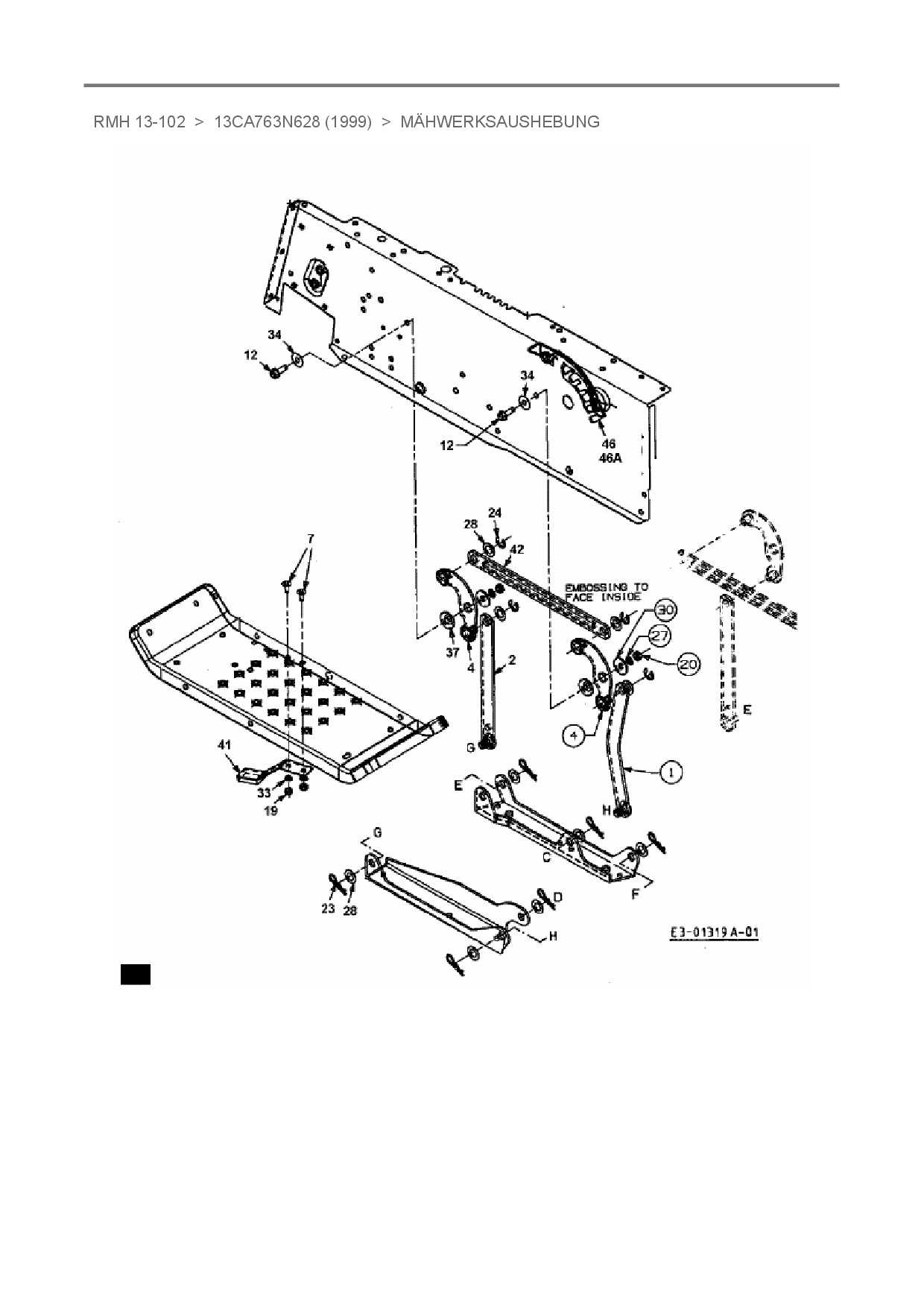 Ersatzteile für Rasentraktor Raiffeisen RMH 13-102 aus der Zeichnung Mähwerksaushebung: