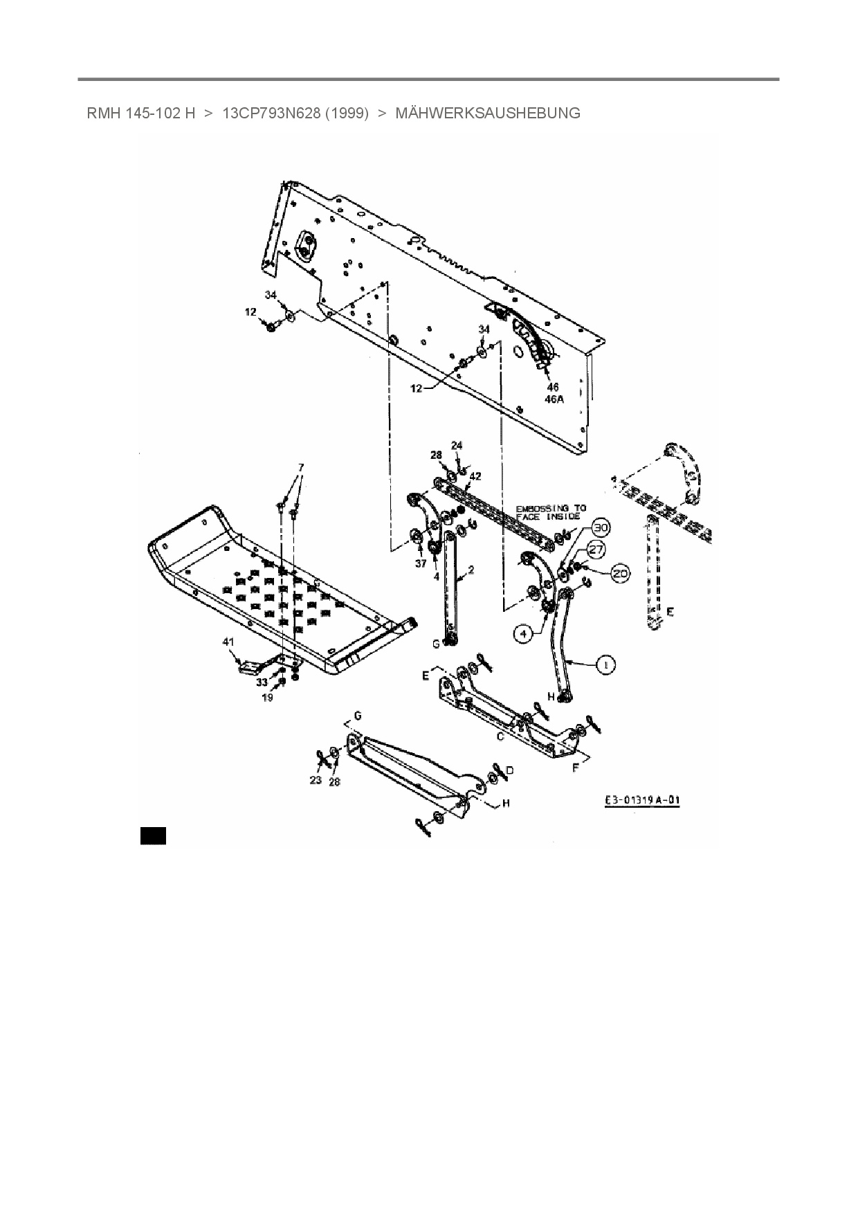 Ersatzteile für Rasentraktor Raiffeisen RMH 145-102 H aus der Zeichnung Mähwerksaushebung: