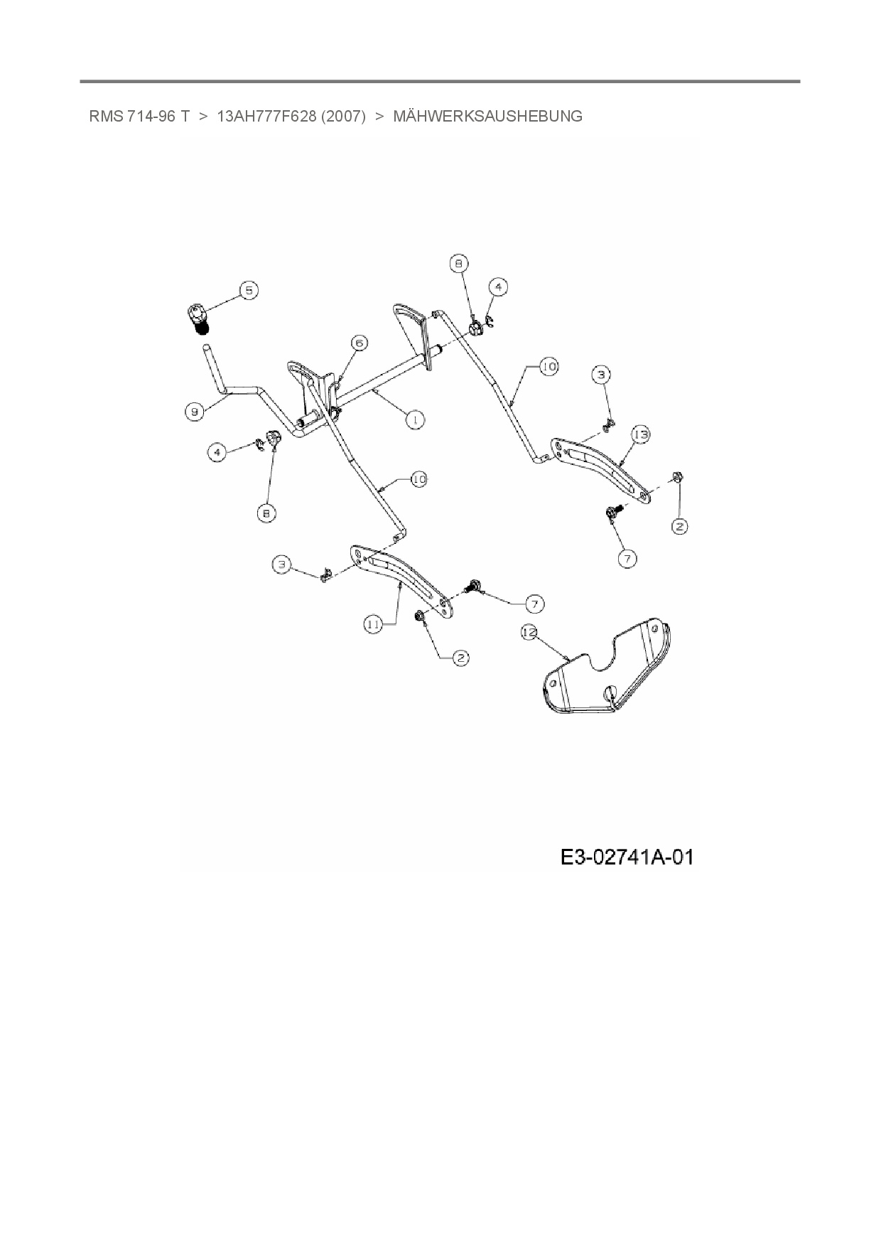 Ersatzteile für Rasentraktor Raiffeisen RMS 714-96 T aus der Zeichnung Mähwerksaushebung: