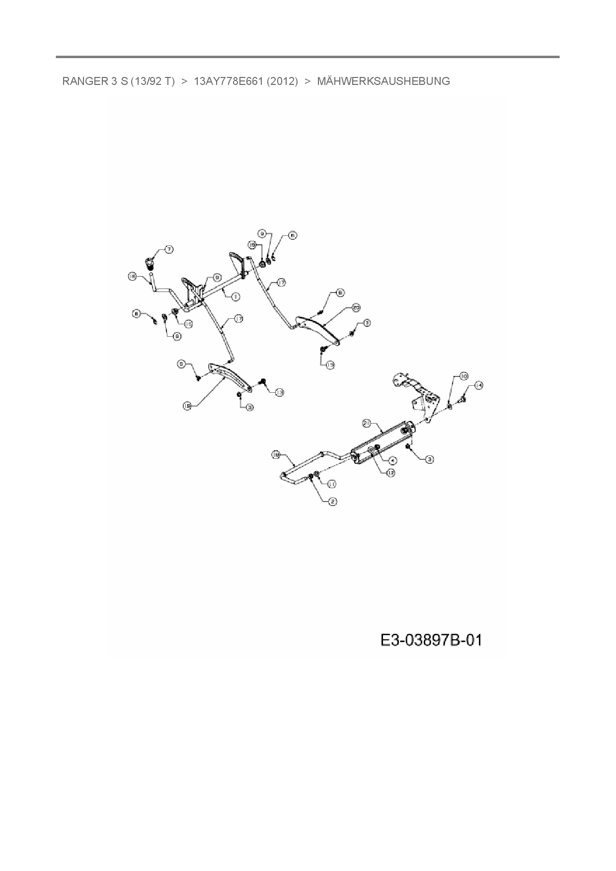 Ersatzteile für Rasentraktor Ranger Ranger 3 S (13/92 T) aus der Zeichnung Mähwerksaushebung: