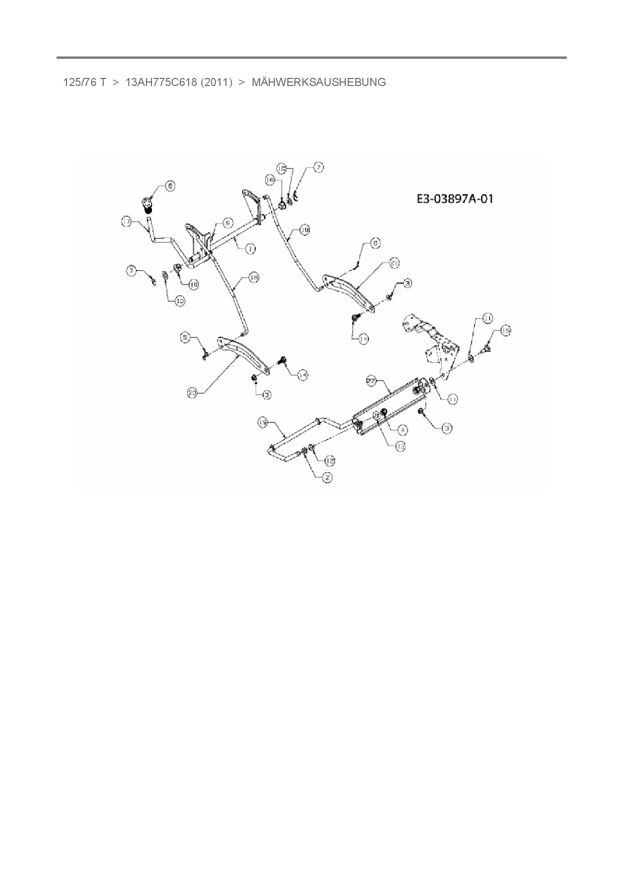 Ersatzteile für Rasentraktor Rasor 125/76 T aus der Zeichnung Mähwerksaushebung: