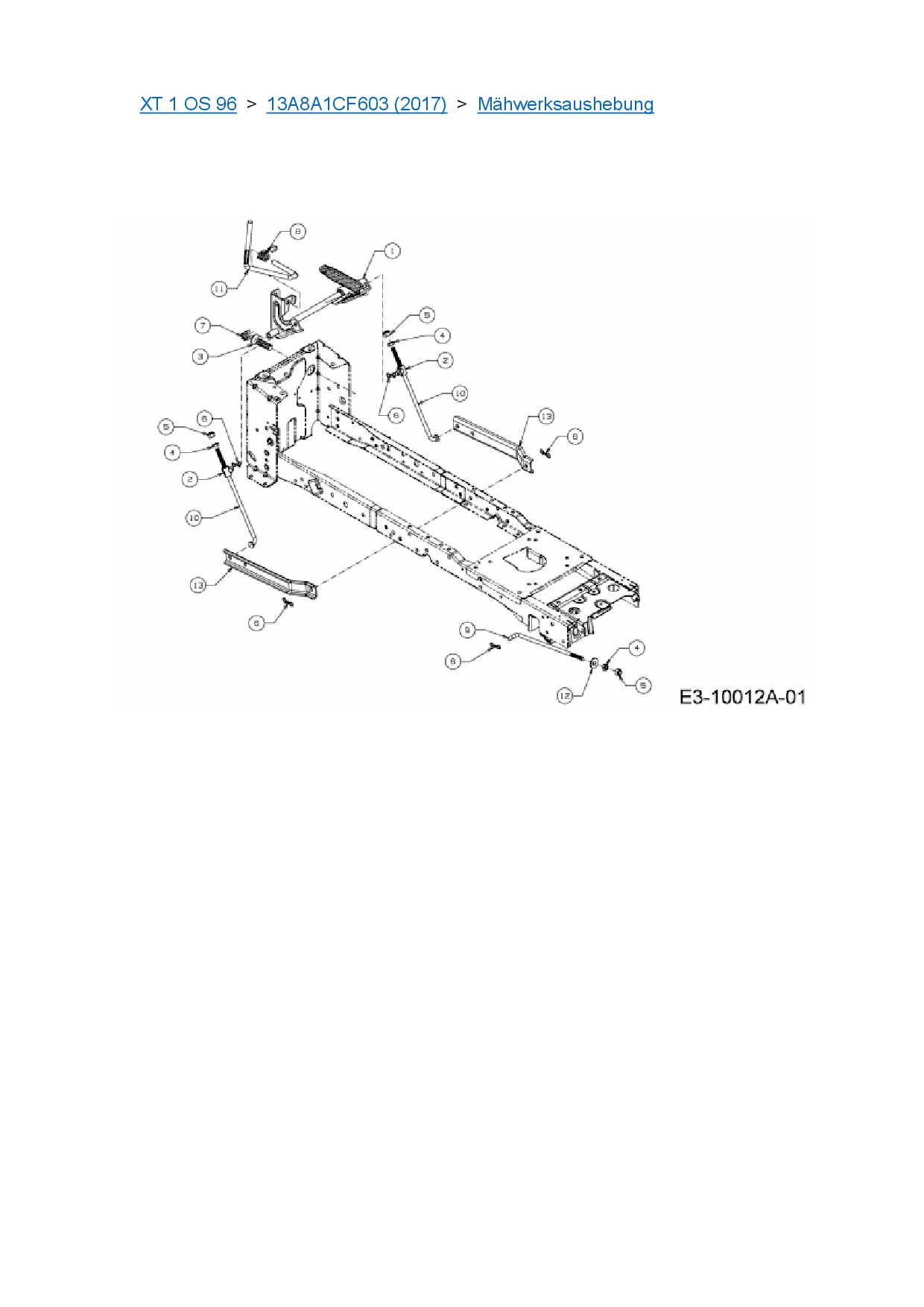 Ersatzteile für Rasentraktor Cub Cadet XT 1 OS 96 aus der Zeichnung Mähwerksaushebung: