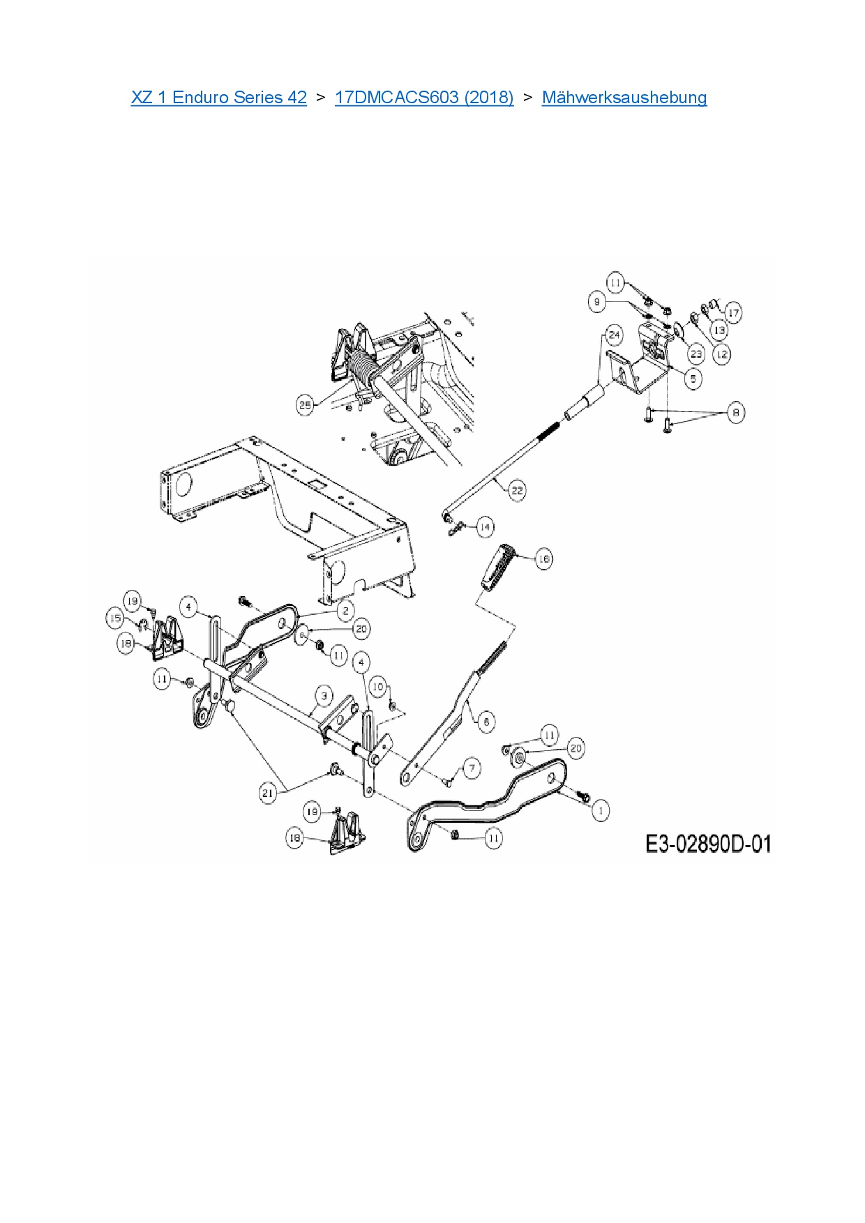 Ersatzteile für Zero Turn Cub Cadet XZ 1 Enduro Series 42 aus der Zeichnung Mähwerksaushebung: