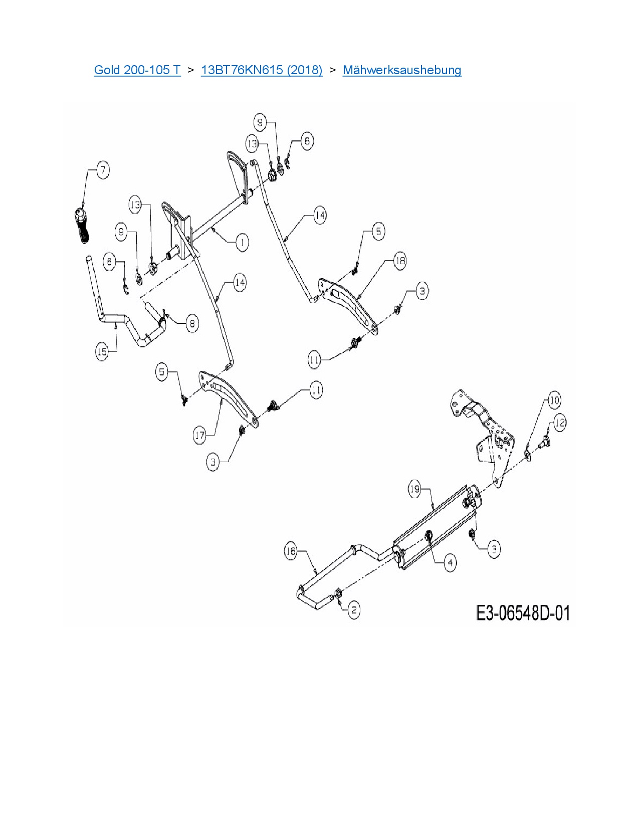 Ersatzteile für Rasentraktor MTD Gold 200-105 T aus der Zeichnung Mähwerksaushebung: