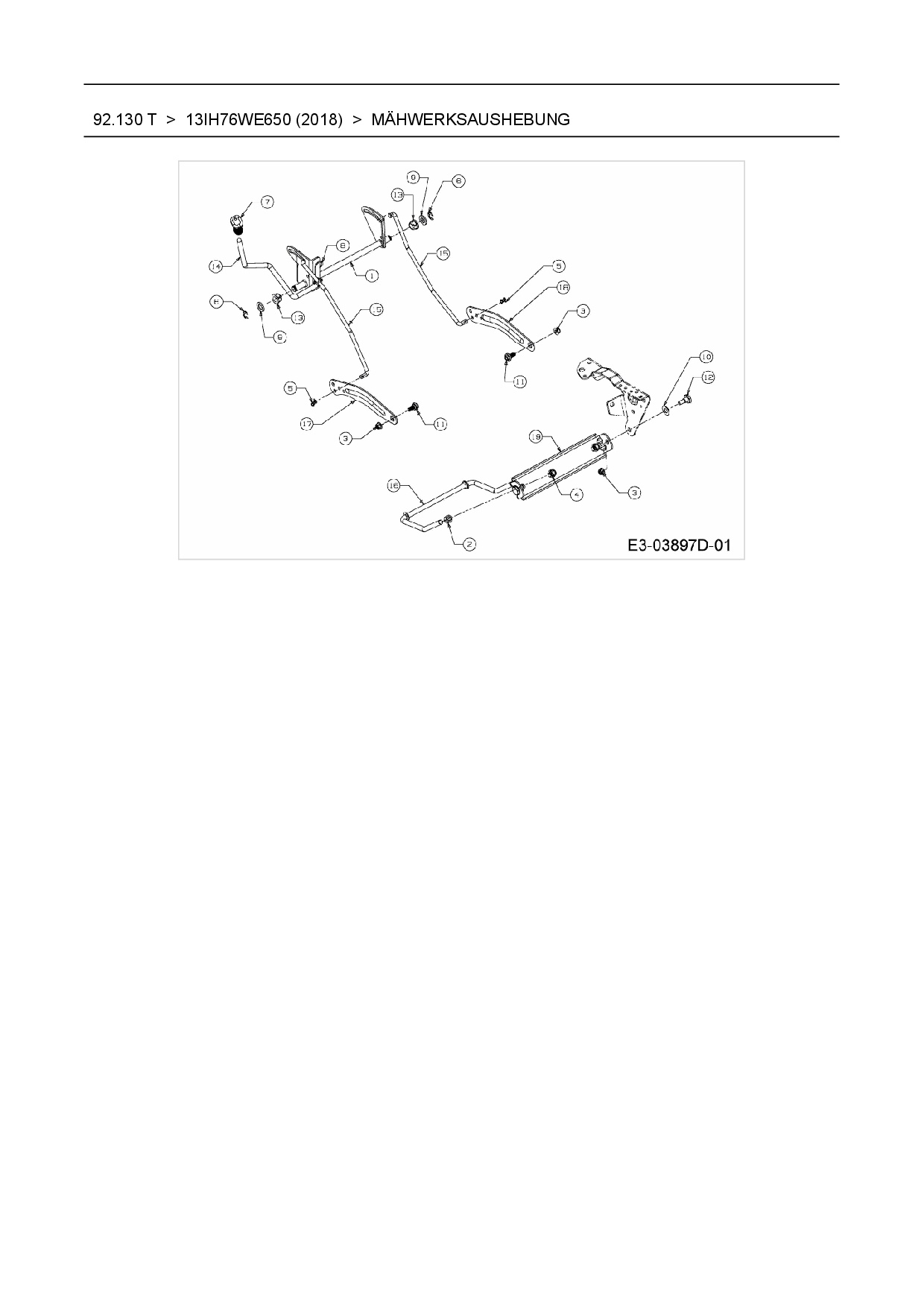 Ersatzteile für Rasentraktor Wolf-Garten 92.130 T aus der Zeichnung Mähwerksaushebung: