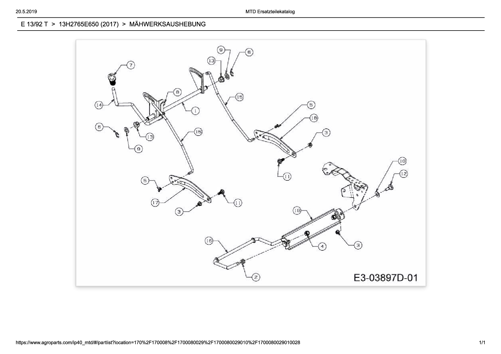 Ersatzteile für Rasentraktor Wolf-Garten Expert E 13/92 T aus der Zeichnung Mähwerksaushebung:
