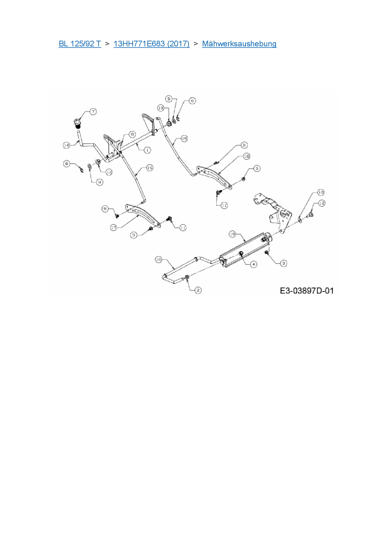 Zeichnung für Black-Line Rasentraktor BL 125/92 T mit der Geräte-Artikelnr. 13HH771E683 ab Baujahr 2017: