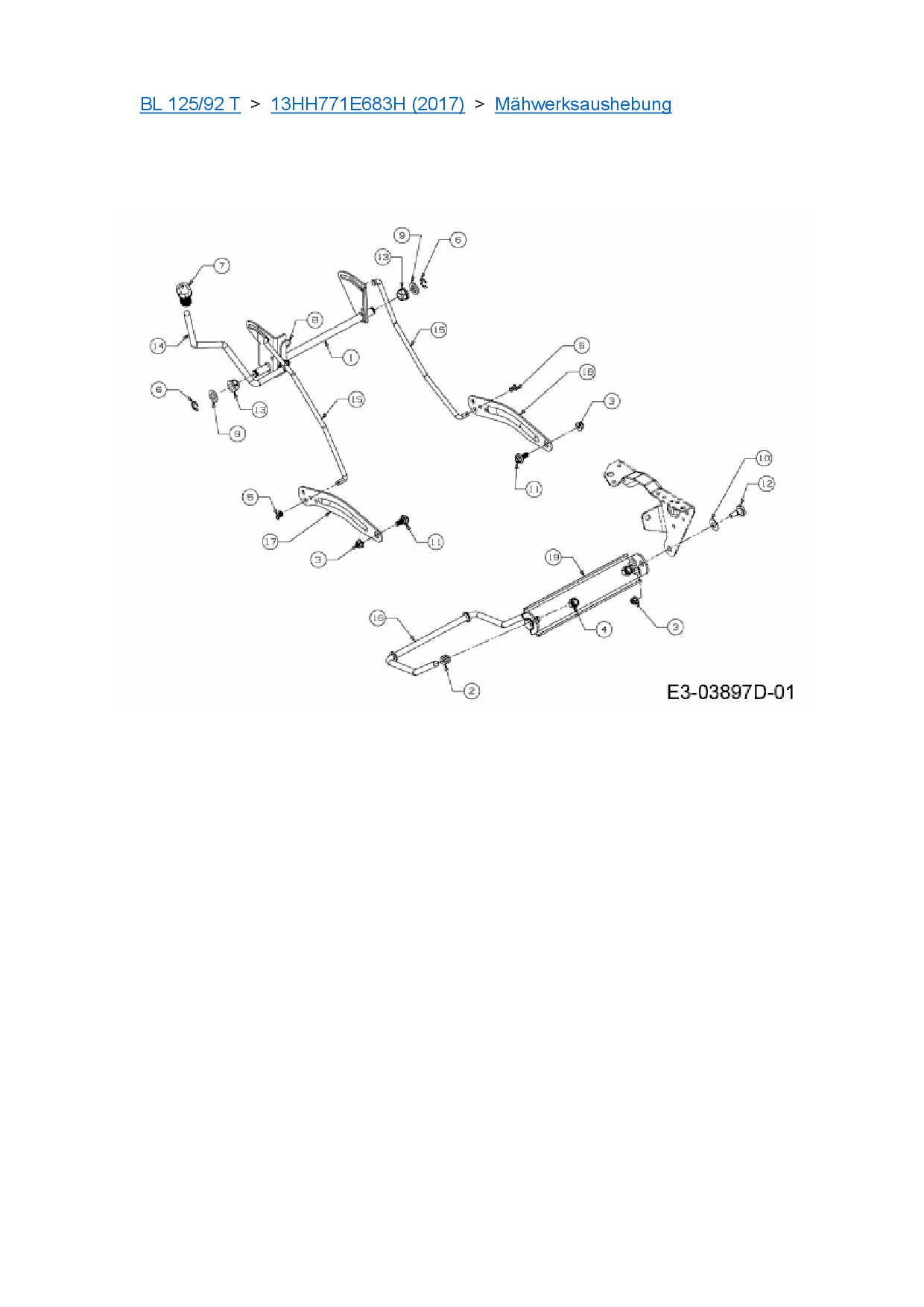 Ersatzteile für Rasentraktor Black-Line BL 125/92 T aus der Zeichnung Mähwerksaushebung: