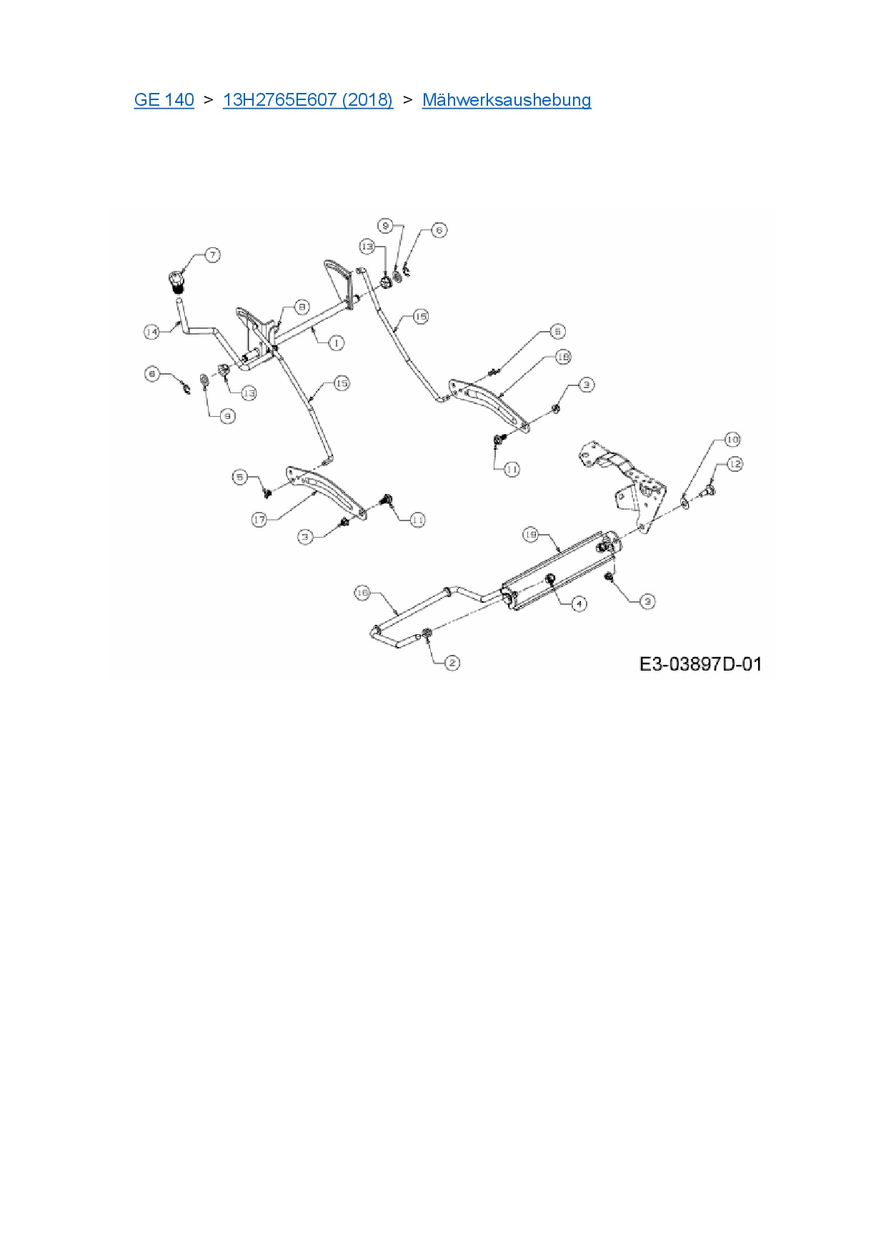 Ersatzteile für Rasentraktor Blisar GE 140 aus der Zeichnung Mähwerksaushebung: