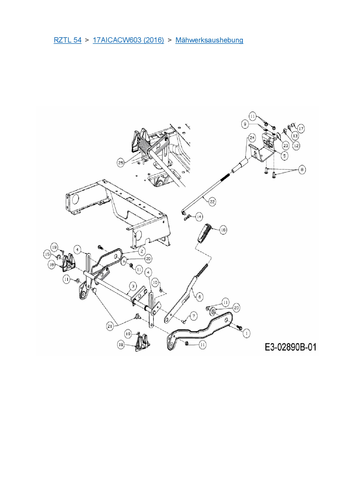 Ersatzteile für Zero Turn Cub Cadet RZTL 54 aus der Zeichnung Mähwerksaushebung: