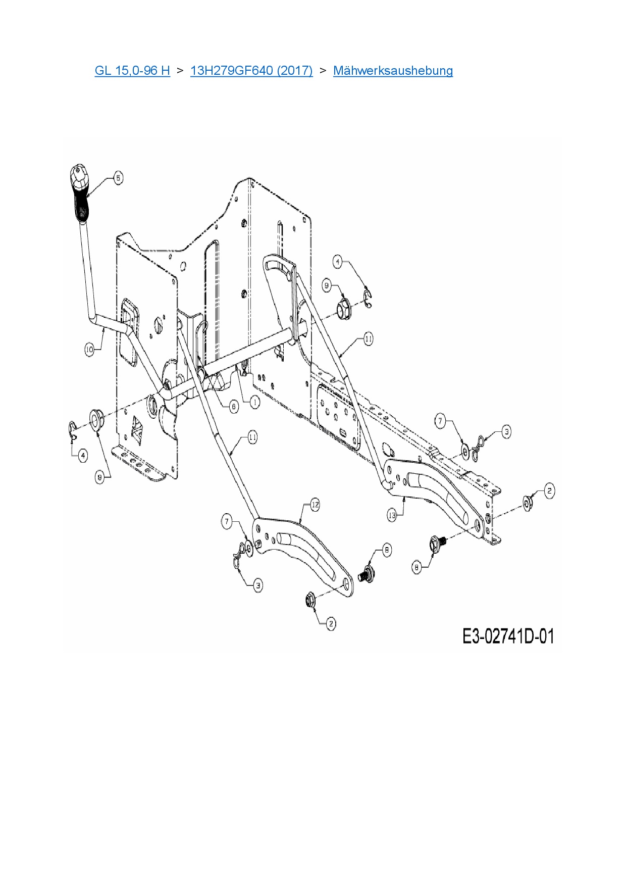 Ersatzteile für Rasentraktor Gartenland GL 15,0-96 H aus der Zeichnung Mähwerksaushebung: